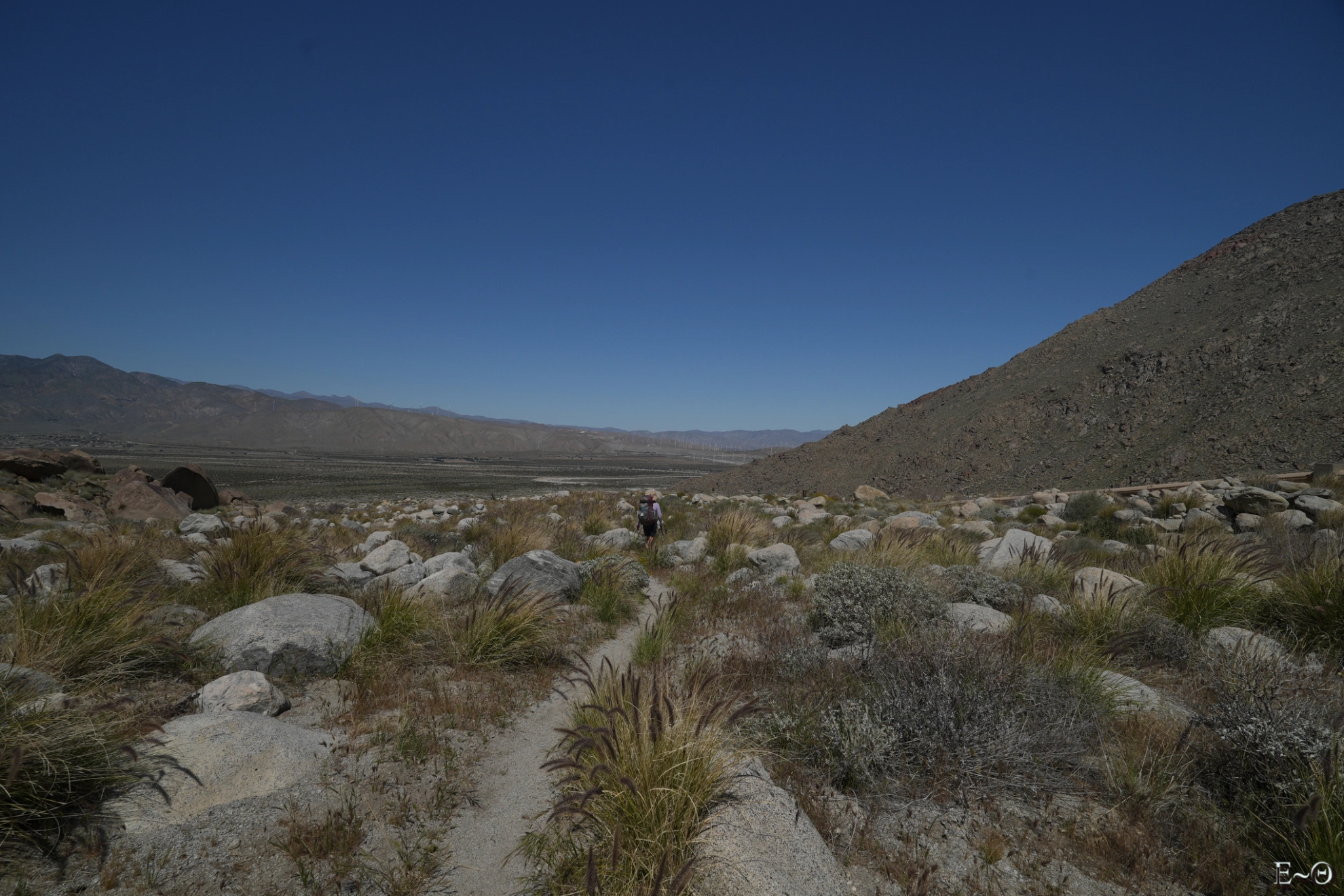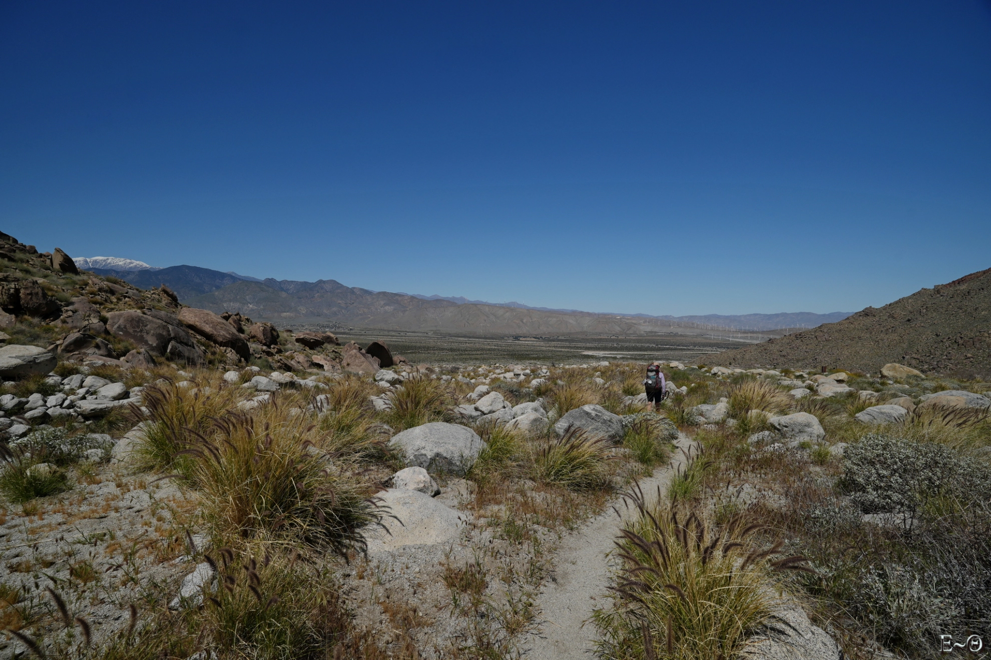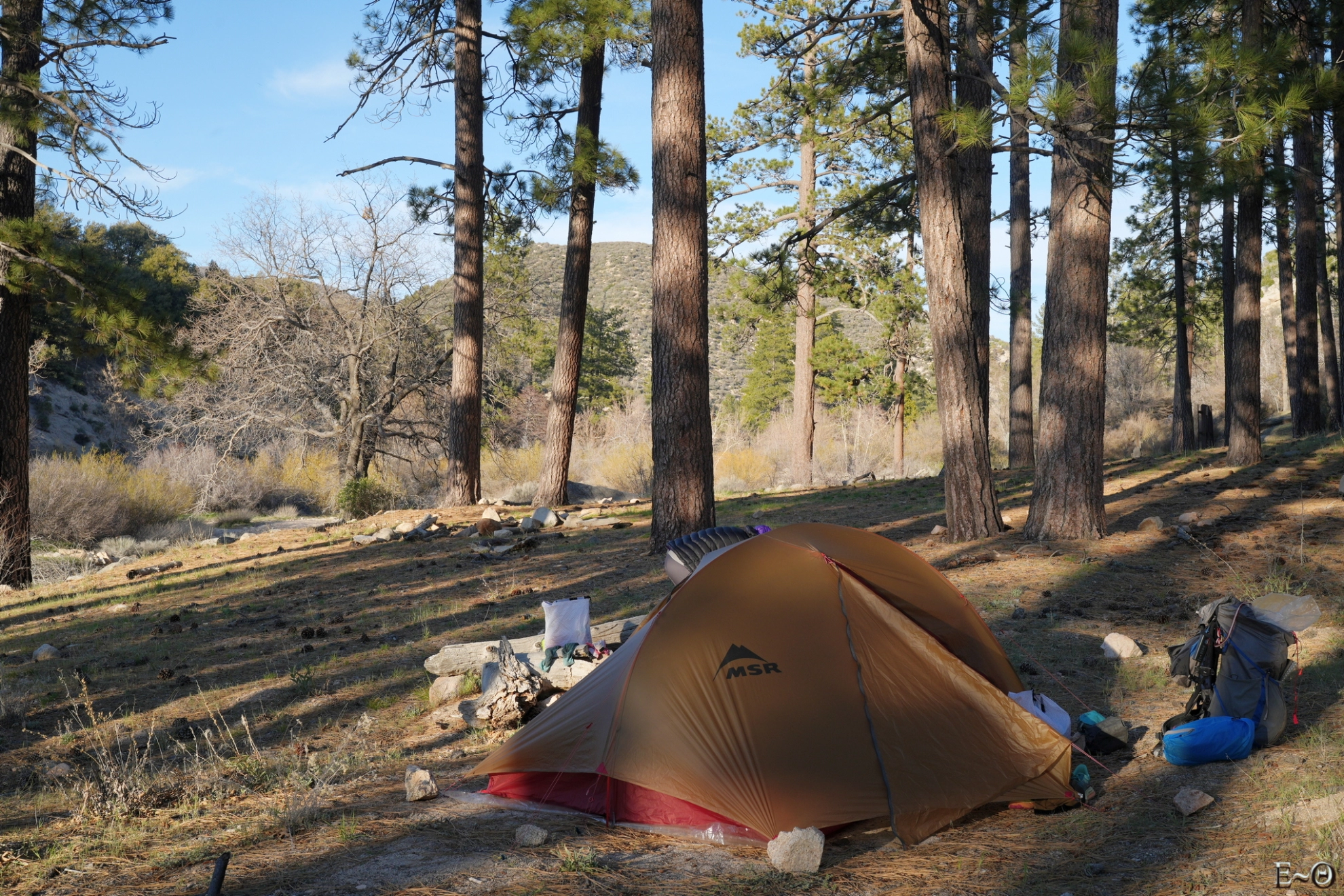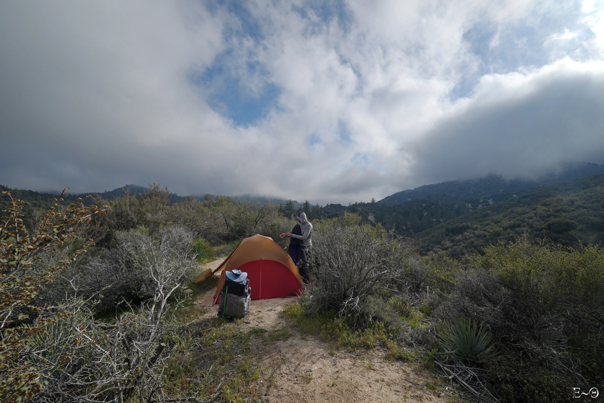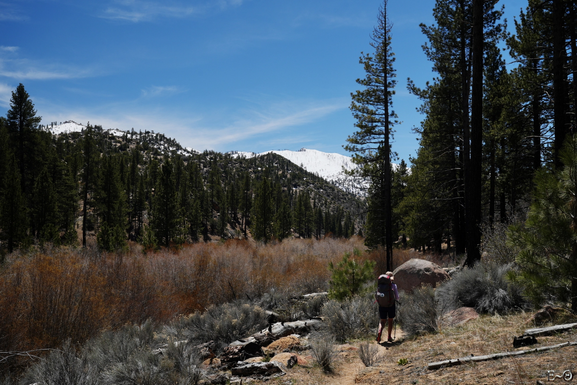 Sur cette première partie du PCT, il n’existe pas de difficulté majeure de ravitaillement et cela contribue à limiter la charge portée. C’est plutôt une aubaine car c’est ici que commence un portage qui va durer… des mois. Ceci explique pourquoi la préparation logistique est essentielle. Ceci explique aussi pourquoi la majorité des randonneurs n’emporte comme appareil photo qu’un smartphone. Quelques amateurs emportent au choix un appareil expert compact ou plus rarement un hybride plein format. La fréquence des zones sableuses, voire des zones brulées avec cendres sur cette partie du PCT constitue une menace pour la santé du matériel, et il est très difficile d’échapper aux poussières sur les capteurs.