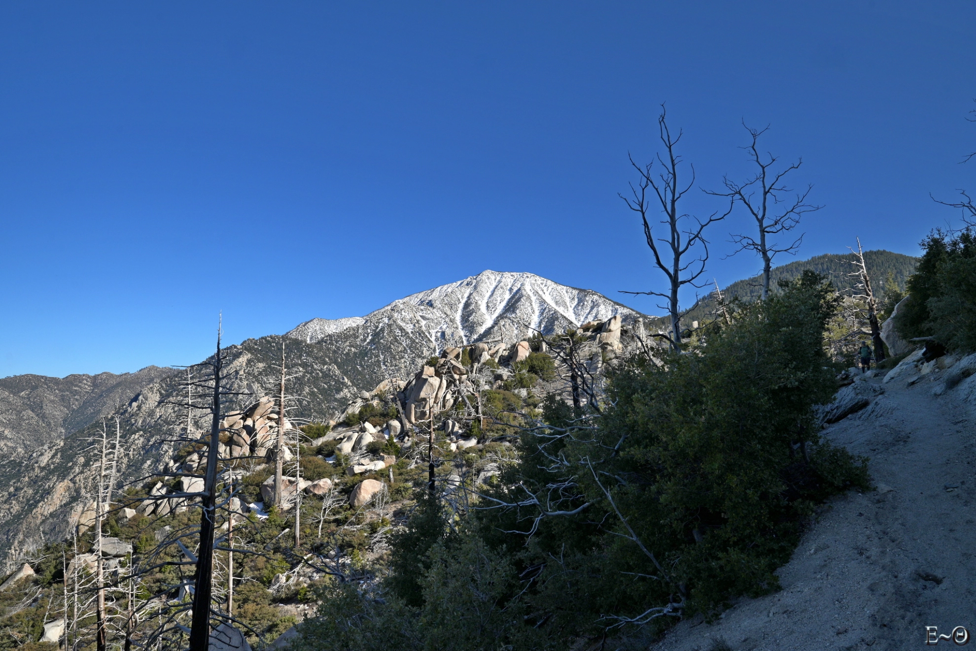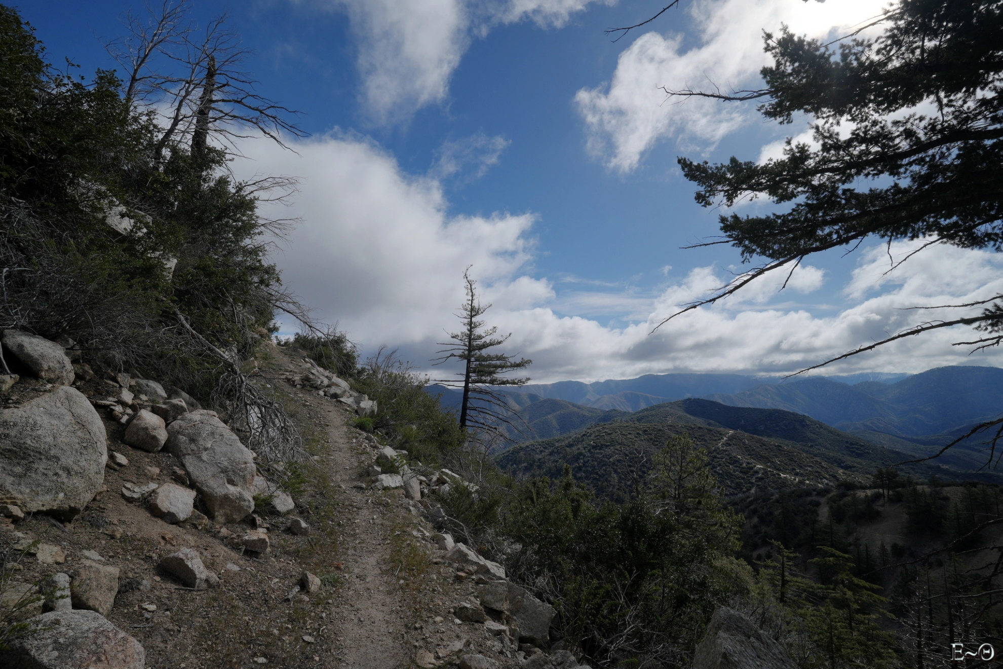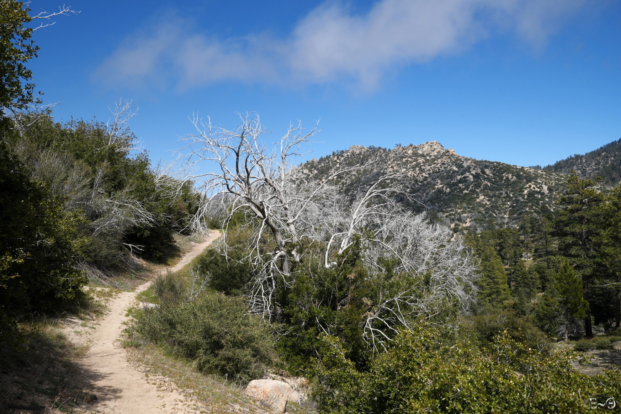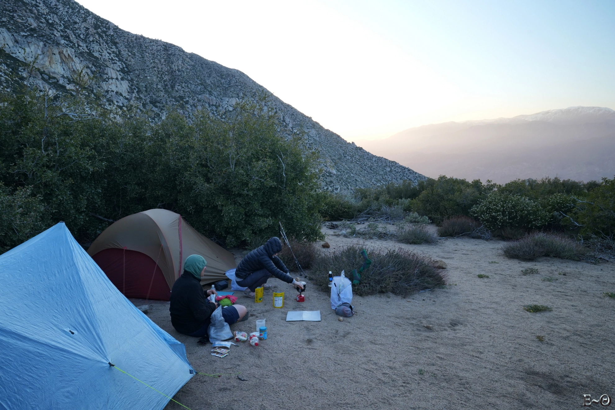 Sur cette première partie du PCT, il n’existe pas de difficulté majeure de ravitaillement et cela contribue à limiter la charge portée. C’est plutôt une aubaine car c’est ici que commence un portage qui va durer… des mois. Ceci explique pourquoi la préparation logistique est essentielle. Ceci explique aussi pourquoi la majorité des randonneurs n’emporte comme appareil photo qu’un smartphone. Quelques amateurs emportent au choix un appareil expert compact ou plus rarement un hybride plein format. La fréquence des zones sableuses, voire des zones brulées avec cendres sur cette partie du PCT constitue une menace pour la santé du matériel, et il est très difficile d’échapper aux poussières sur les capteurs.