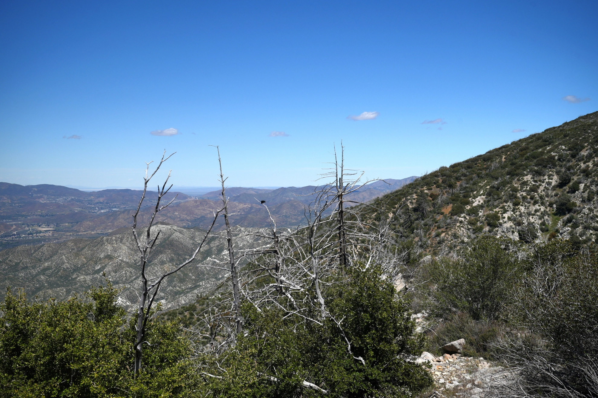 Il serait tentant de randonner avec du matériel permettant de documenter la flore et la faune, mais il faudrait pour cela rajouter le poids d’un objectif macro et d’un téléobjectif. Si cela reste envisageable dans cette première partie du PCT où le ravitaillement en nourriture est encore relativement facile, cela devient un sérieux handicap pour la suite dans la Sierra Nevada.
