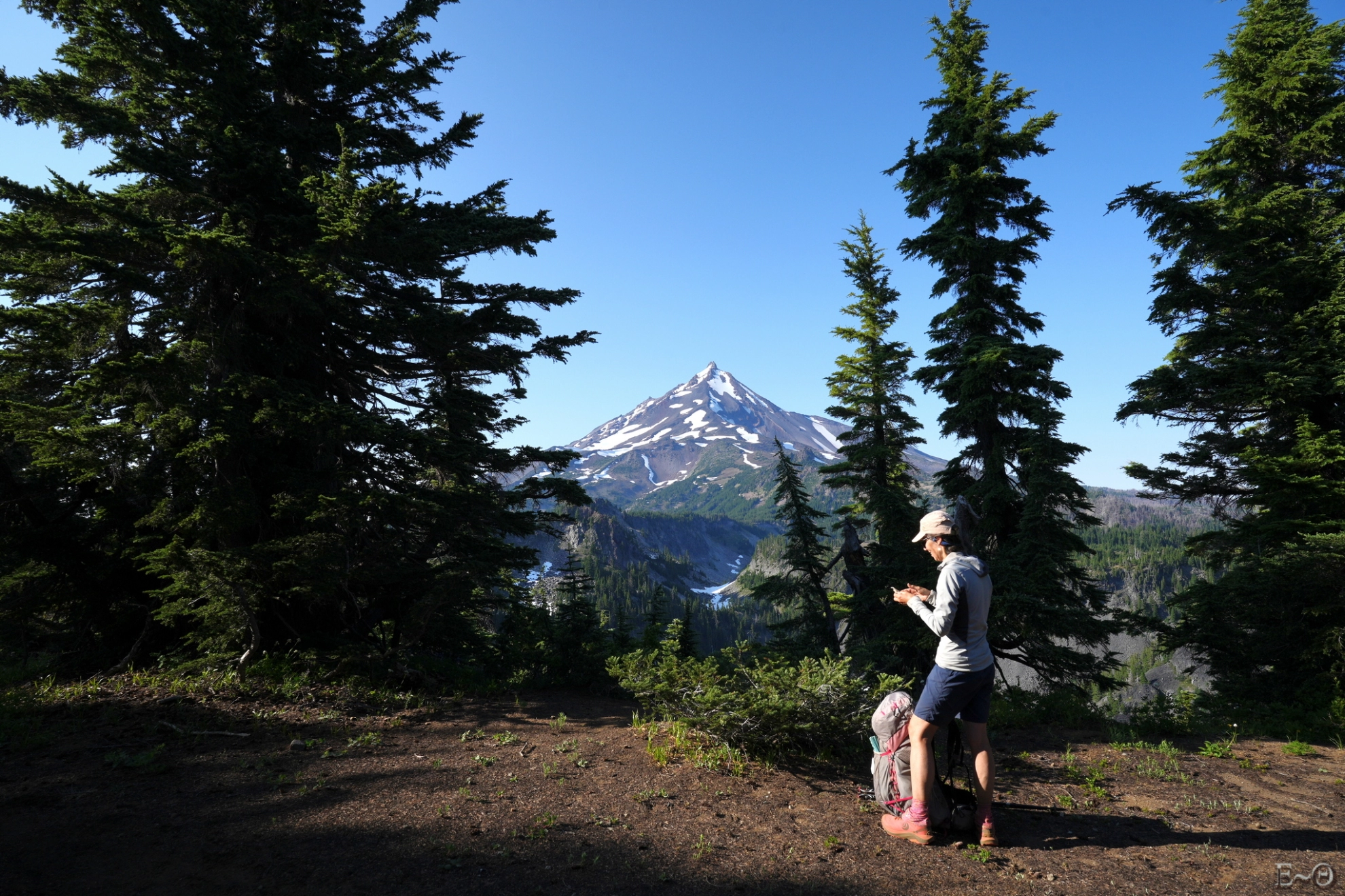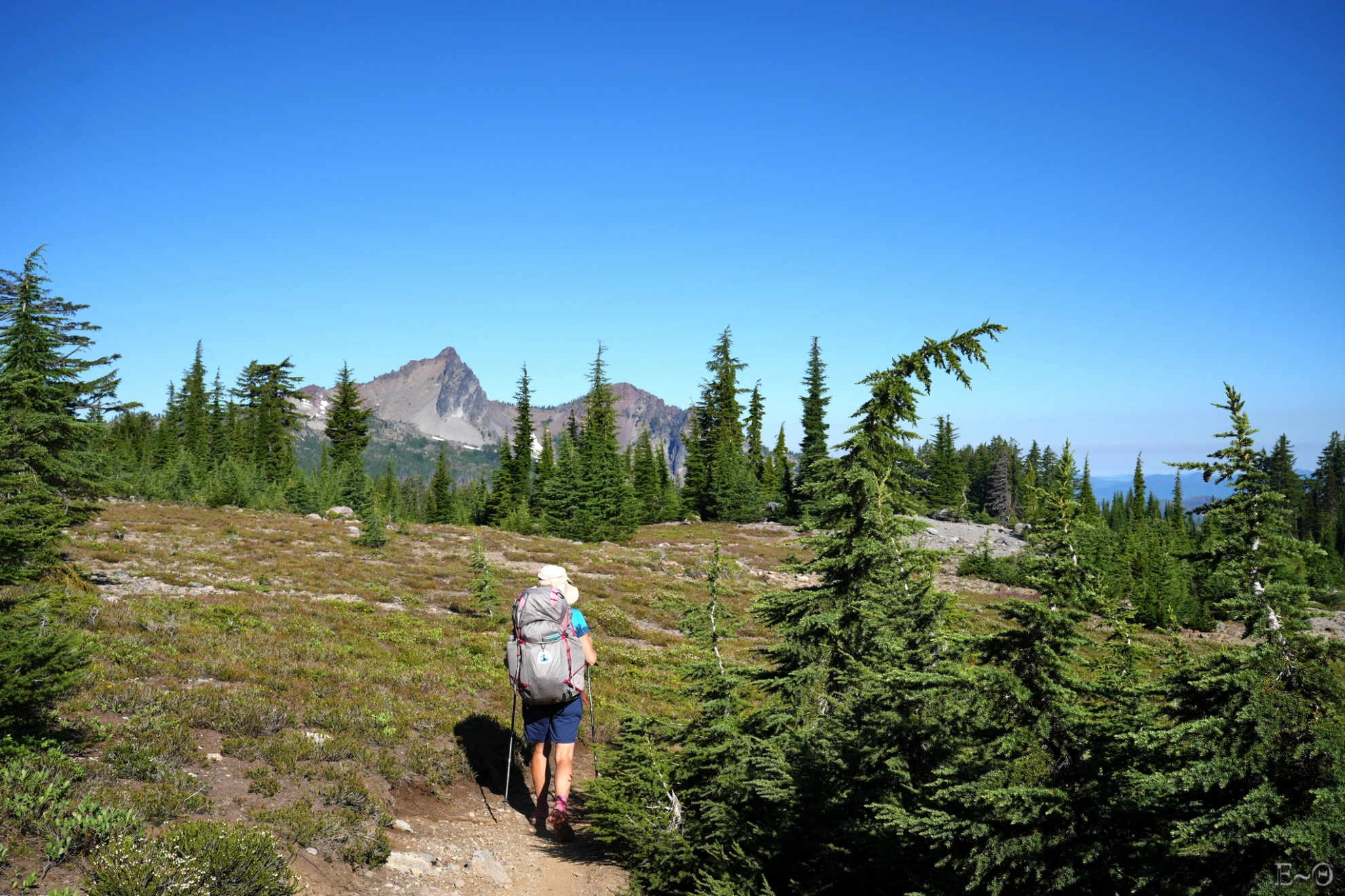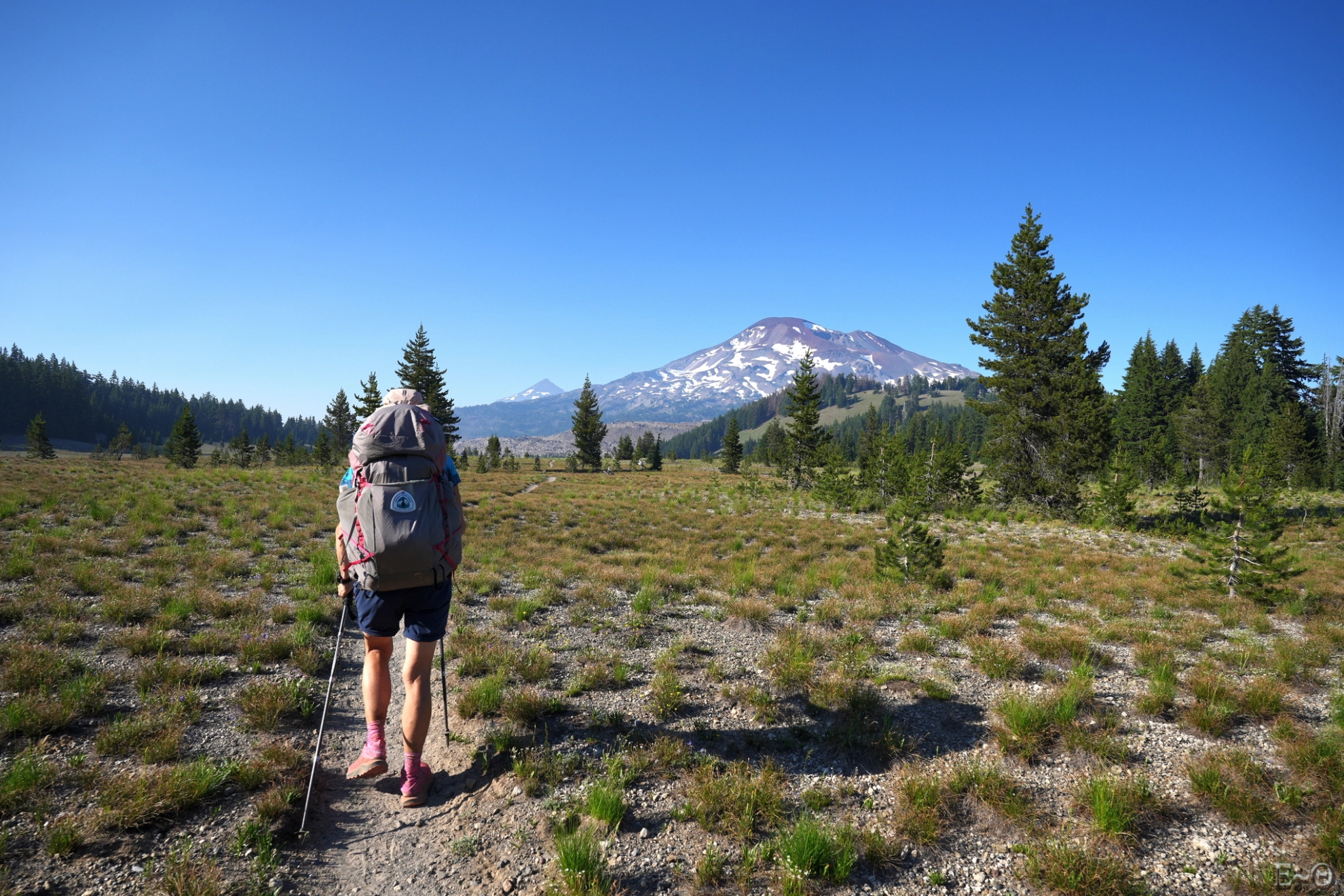 Le PCT en Orégon fait la jonction entre la Californie où il a cheminé près de 2 700 km, et l’état de Washington au nord. Le parcours du PCT est caractérisé par de longues sections de collines avec des pentes modérées, souvent en forêt, faciles (certains diraient ennuyeuses) entrecoupées de zones volcaniques dont les célèbres Crater Lake et Mont Hood.