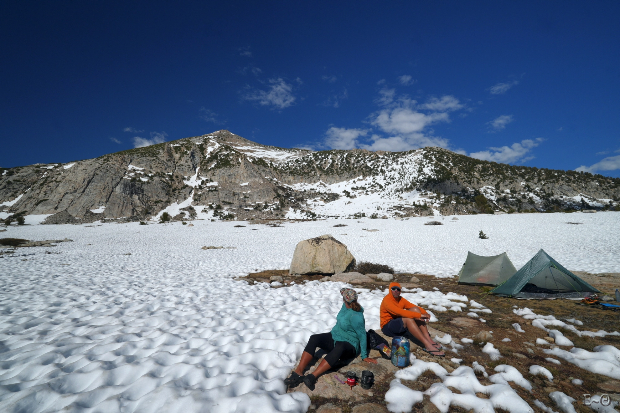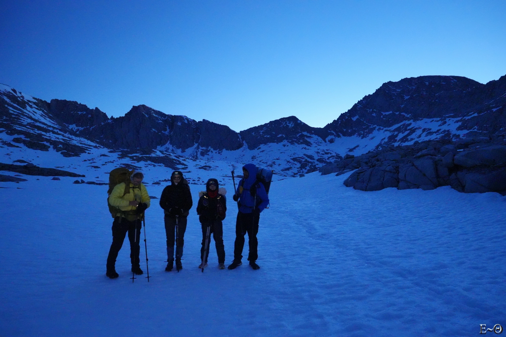 En option sur cette section, figure l’ascension du Mont Whitney. Par beau temps et neige fondue, l’ascension ne présente pas de difficulté particulière. À la période où nous arrivons au pied du Mont Whitney, la question de son ascension par le groupe ne se posera pas très longtemps. Les conditions sur les voies d’accès sont médiocres et une pratique de la marche « glaciaire » est recommandée (même s’il n’y a pas de glacier) pour progresser sur le manteau neigeux. Ce qui n’est pas le cas général des membres du groupe à l’exception d’Emgan.