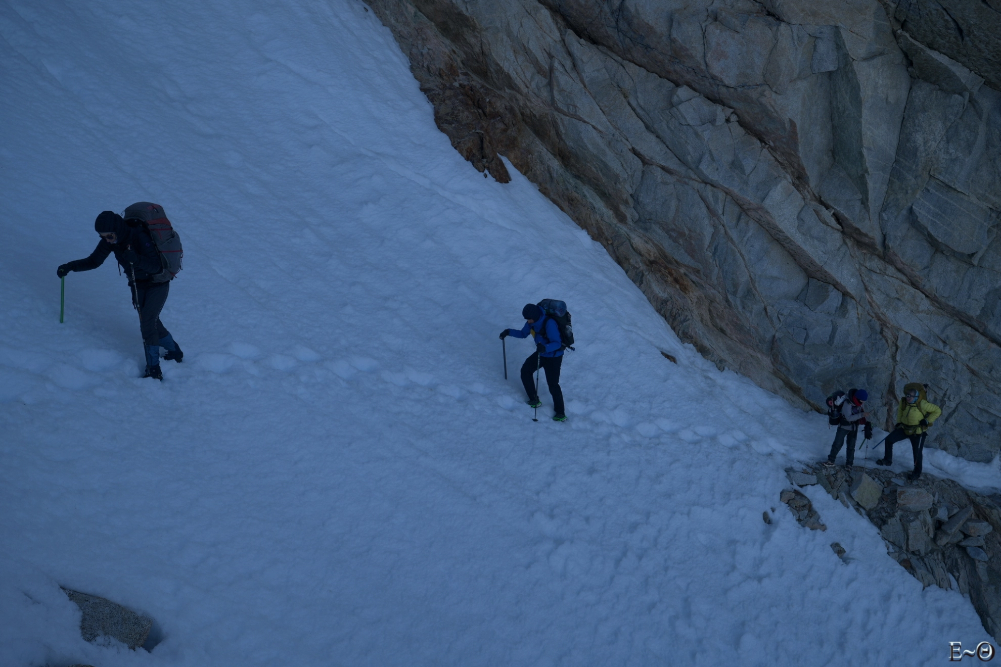 Une autre difficulté est liée à l’état de la neige. Une remontée des températures peut être inopportune et engendrer des galères (postholing).