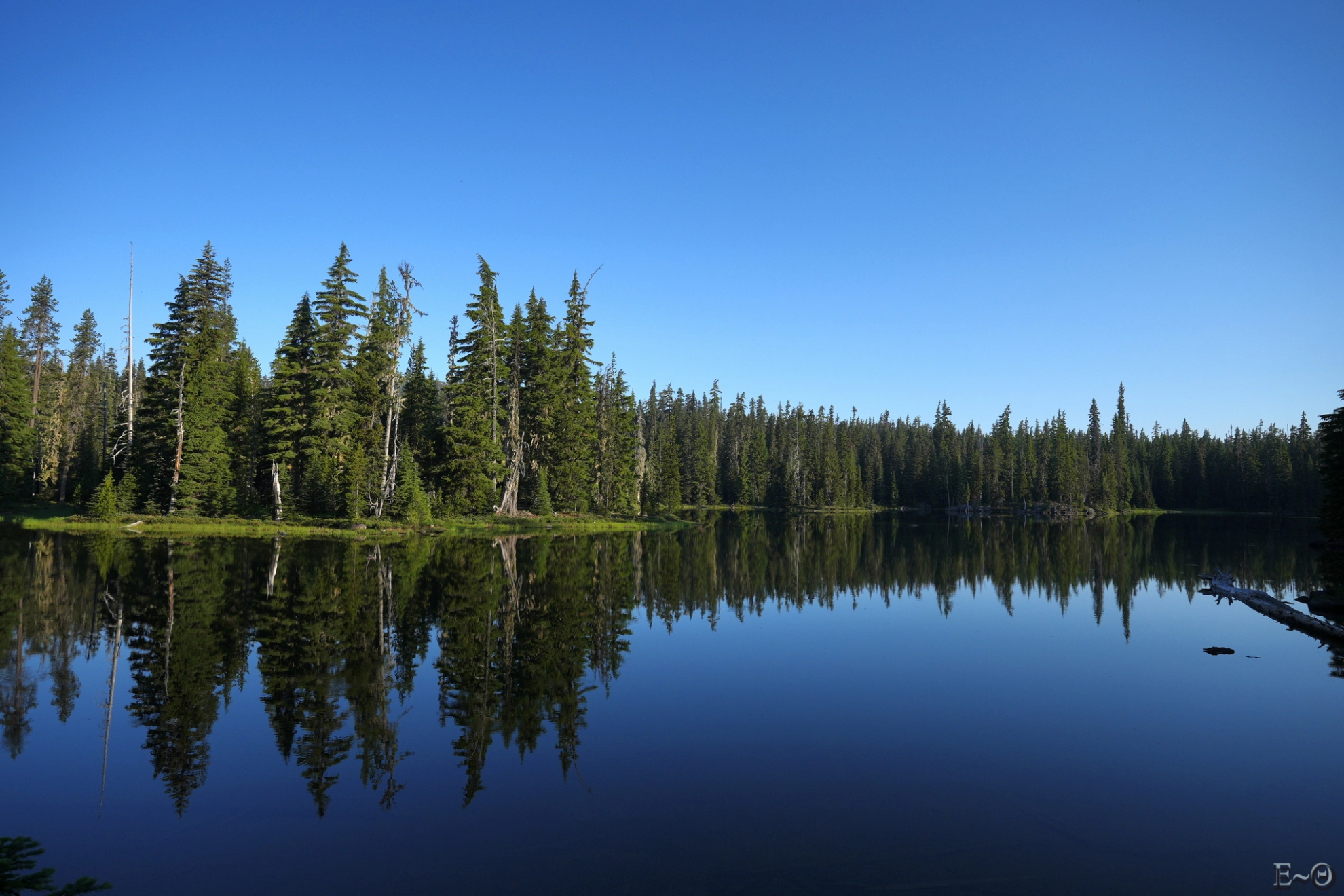 Les paysages sont enfin redevenus visibles et beaux. Nous continuons à avancer sur la frontière virtuelle entre la nationale Deschutes Forest et Willamette National Forest, dans le parc des Three Sisters. Les lacs sont omniprésents, de toutes formes, de couleurs bleus, vertes, ou grises selon l’humeur changeante des nuages et des rayons du soleil. C’est une immense zone humide, et nous randonnons dans un labyrinthe aquatique, entrecoupés de forêts ou de praire.