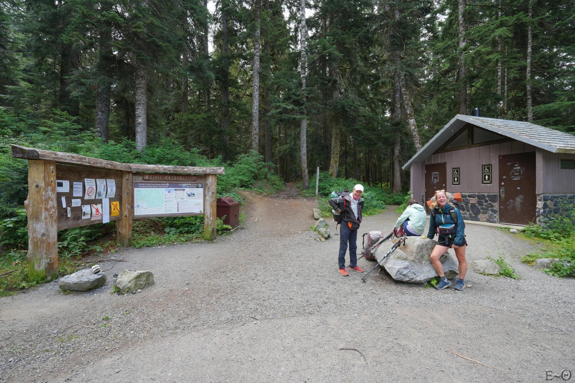 Nous prenons le temps de nous poser devant le Washington Alpine Club et nous voilà parties pour l’avant-dernière section. C’est impossible de prendre la mesure de ce que nous avons déjà parcouru. Quand on regarde la carte, on voit bien que le départ est lointain, et on devine maintenant que l’arrivée est toute proche, mais aussi encore bien abstraite. La fin est annoncée bien physique et il ne faut pas se désunir. La veille, nous avons eu des informations sur les étapes futures, et elles promettent d’être toniques en termes de dénivelé montant et descendant. Il nous a aussi été répété qu’elle serait superbe.
