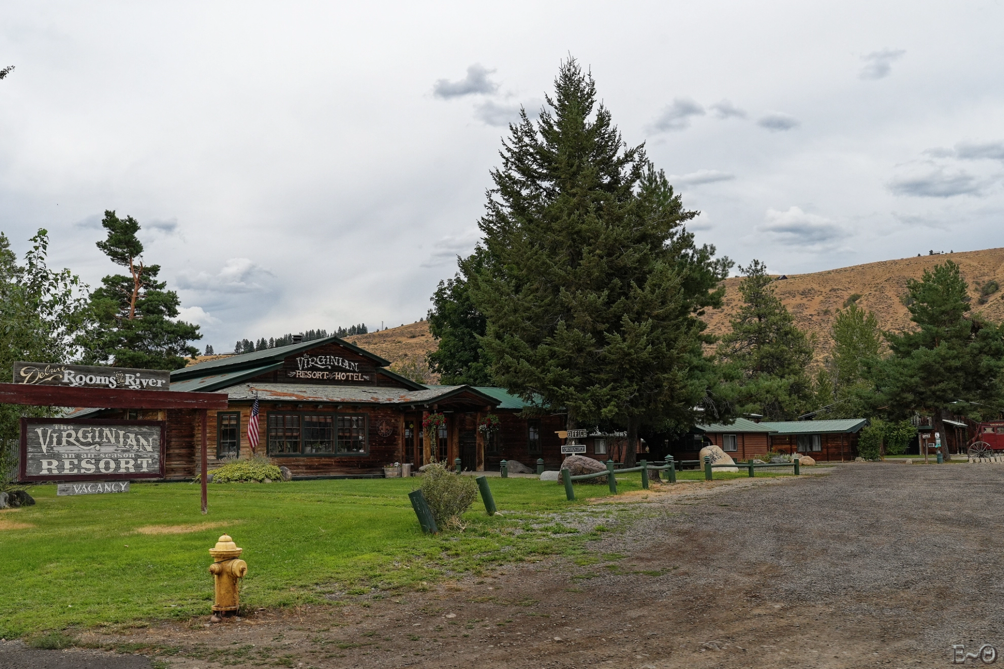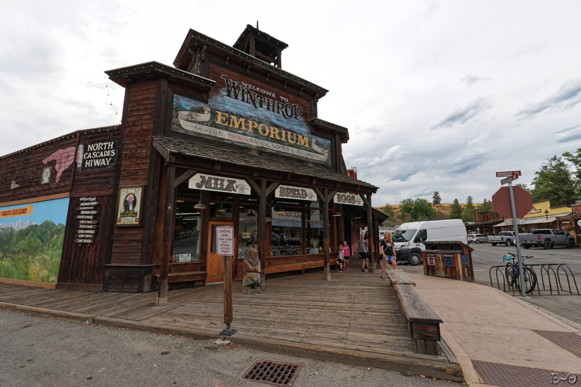 Nous traversons des lieux que nous n’aurions jamais pris le temps de visiter, hors du déplacement de masse. Une vraie Américaine plus traditionnelle et sympathique que celle des foules guidées par le consumérisme touristique. Le passage en voiture dans Winthrop est détonnant. La ville est surnommée The CowBoy Town. Effectivement elle est dans son jus, Saloon, façades en bois colorées, Grocery bien ancienne, Gas station, ou même les pompes à essence ont arrêté de vieillir. On repassera sur le retour dans quelques jours.