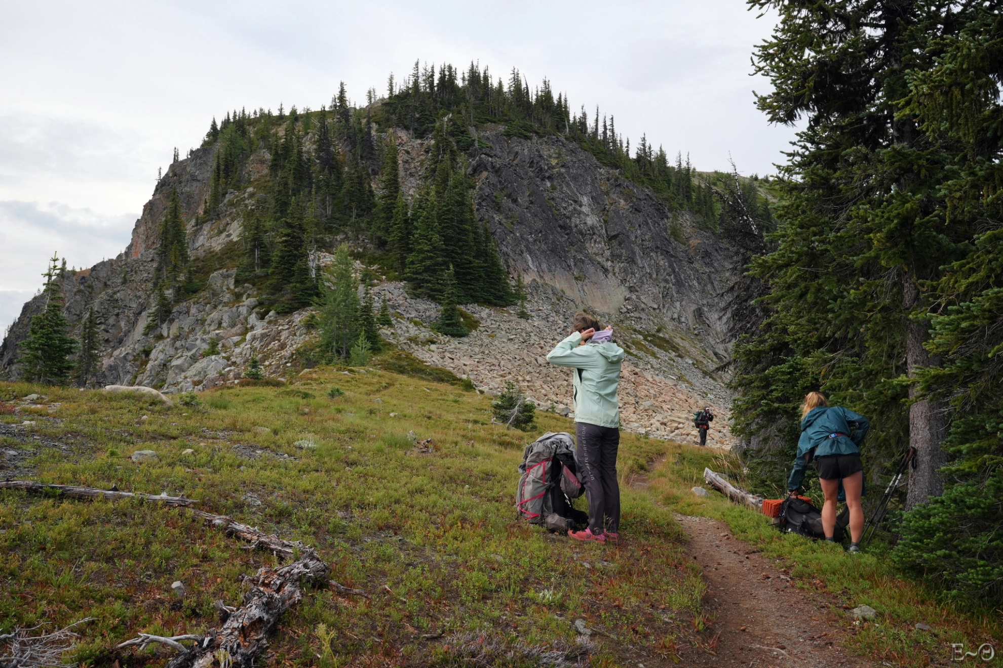 Les températures restent fraîches et nous devinons au loin sur les pics des North Cascades nombres névés et glaciers. La saison d’été est ici courte et les hivers sont féroces, les stigmates glacés dans les pentes nord sont omniprésents. Nous avançons en silence, chacun dans ses pensées, à se remémorer les heures, semaines passées.
