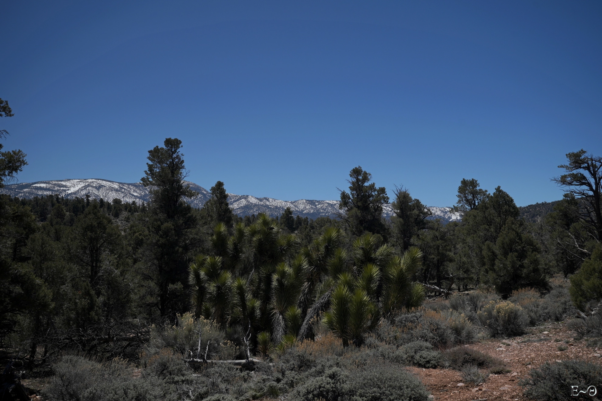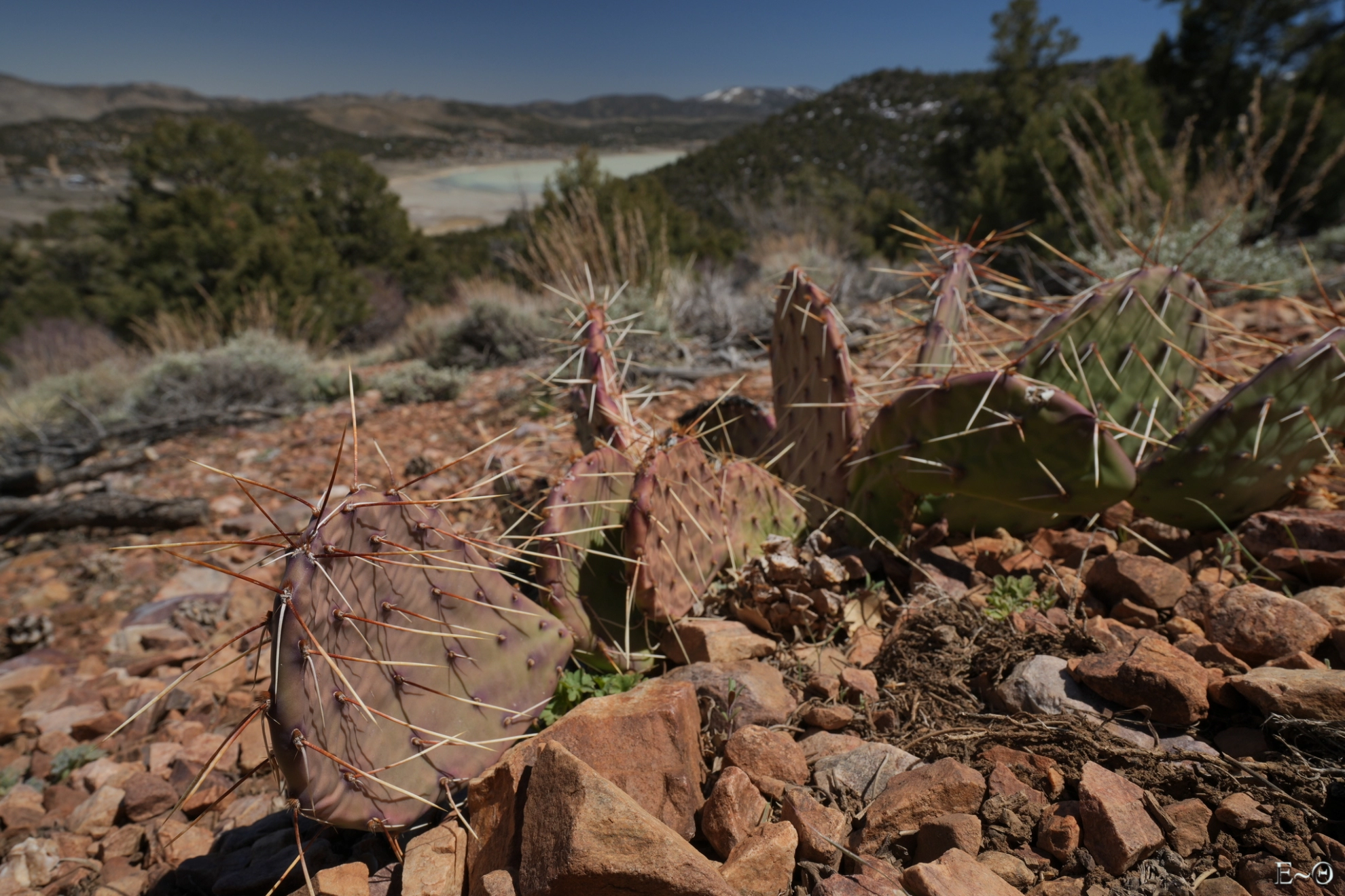 Les Joshua Tree côtoient jeunes pins et chênes. Les cactées sont différentes des jours précédents. Des énormes figuier de Barbarie aux épines de 10 centimètres rouges et jaunes sont omniprésents. Il ne faudrait pas marcher dessus.