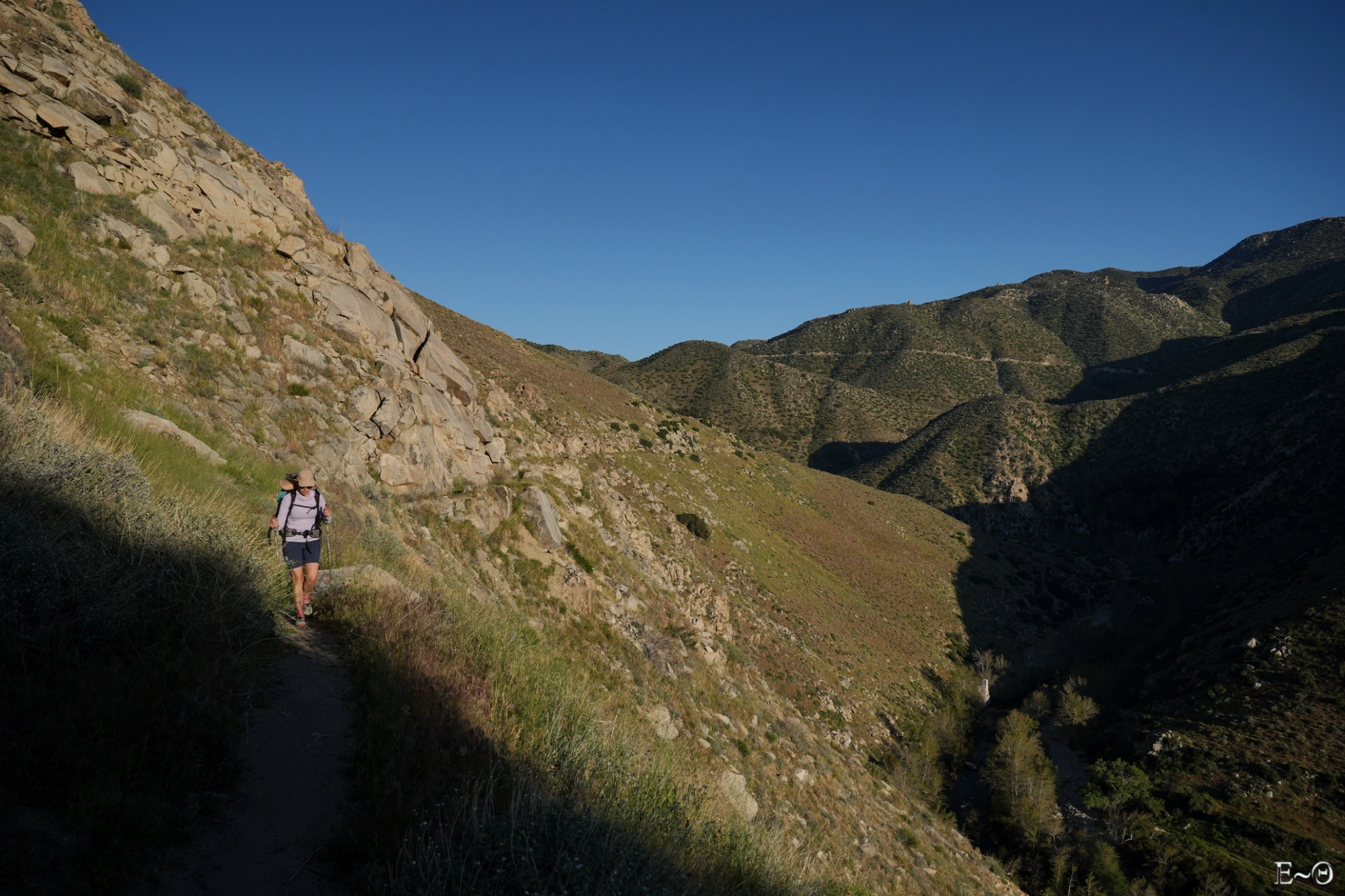 Le reste de la journée se déroule intégralement le long de la vallée de Deep Creek. C’est sûrement une des plus belles étapes. Le sentier est roulant et c’est beaucoup plus agréable que la veille. Les vues sur les montagnes et la gorge sont toutes plus magnifiques, alternance de zones arides, en balcons, ou de falaises granitiques. Un must.