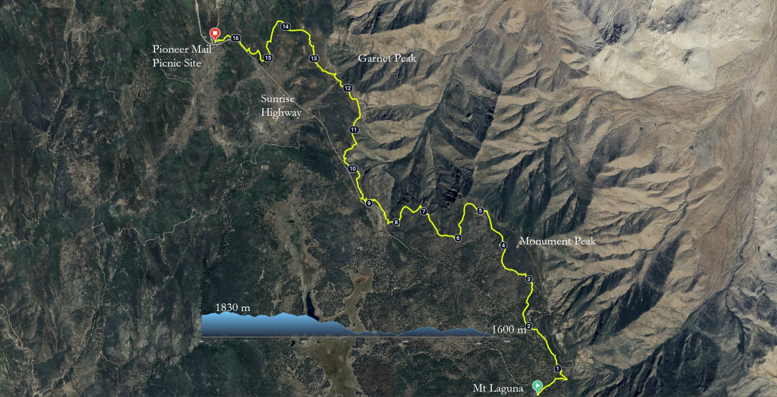 En pratique ce retour en arrière est plutôt bienvenu. Il permet de se projeter au calme sur les quatre prochains jours. Nous n’aurons peut-être pas à faire le détour par la ville de Julian dans deux jours et nous pourrions filer vers la ville de Warner Springs avant la future tempête de neige.