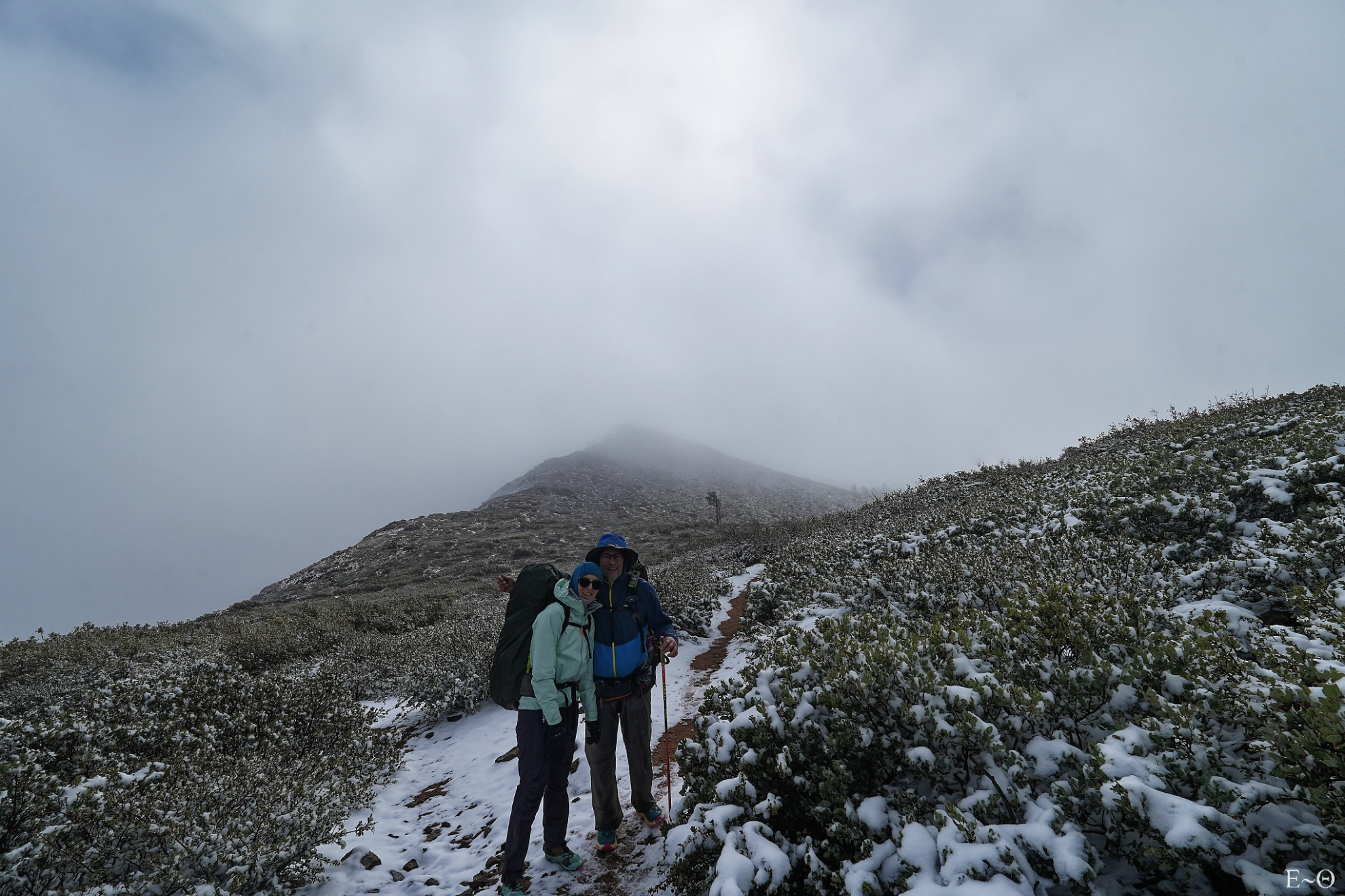 Nous progressons sur un chemin enneigé toute la journée, le long de Stephenson, Garnet et Monument Peak, qui surplombe à l’est l’immense vallée de Mc Cain, 1000 m en contrebas. D’agréable au début, cela deviendra franchement pénible dans l’après-midi. Un blizzard et un vent de face constant ne nous permettront pas d’apprécier totalement la marche. Fatigant et glaçant. La température ne dépassera à aucun moment les 4 °C. Le soir, à l’arrivée au Camp site où nous avions prévu de dormir vers 1800 m d’altitude, nous sommes rassurés, il n’y a pas de neige au sol… Cool ! Par contre les températures ont encore baissé et on devine que la nuit va être fraîche. C’est alors qu’un couple de « thru hikers », répondant aux « trails Name » de Puma et Pusher et ayant déjà randonnée l’Appalachian Trail, soit plus de 3000 km, nous propose de faire du stop jusqu’à notre point de départ et ainsi retourner au chaud au Pine House. Cette suggestion nous plaît beaucoup.