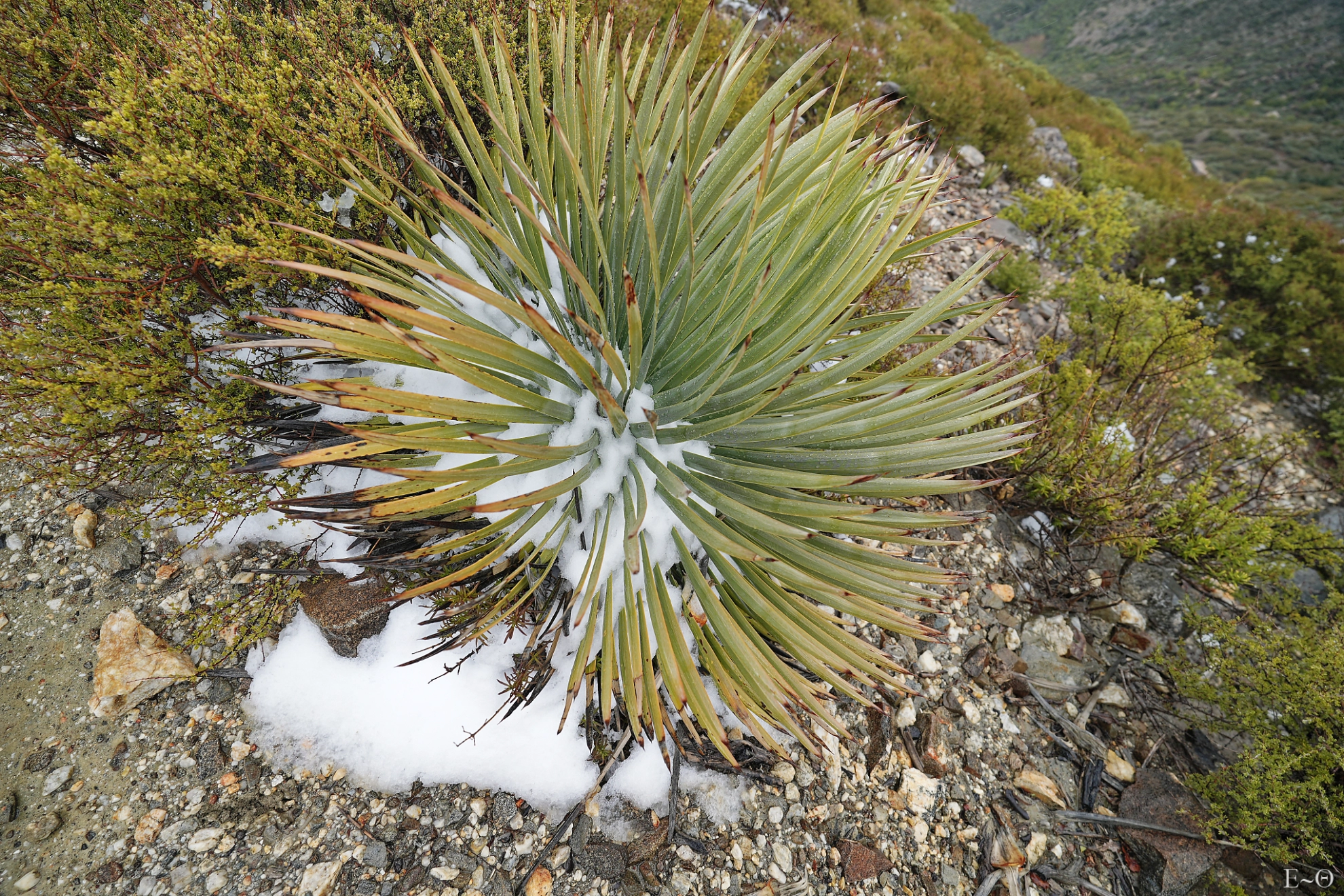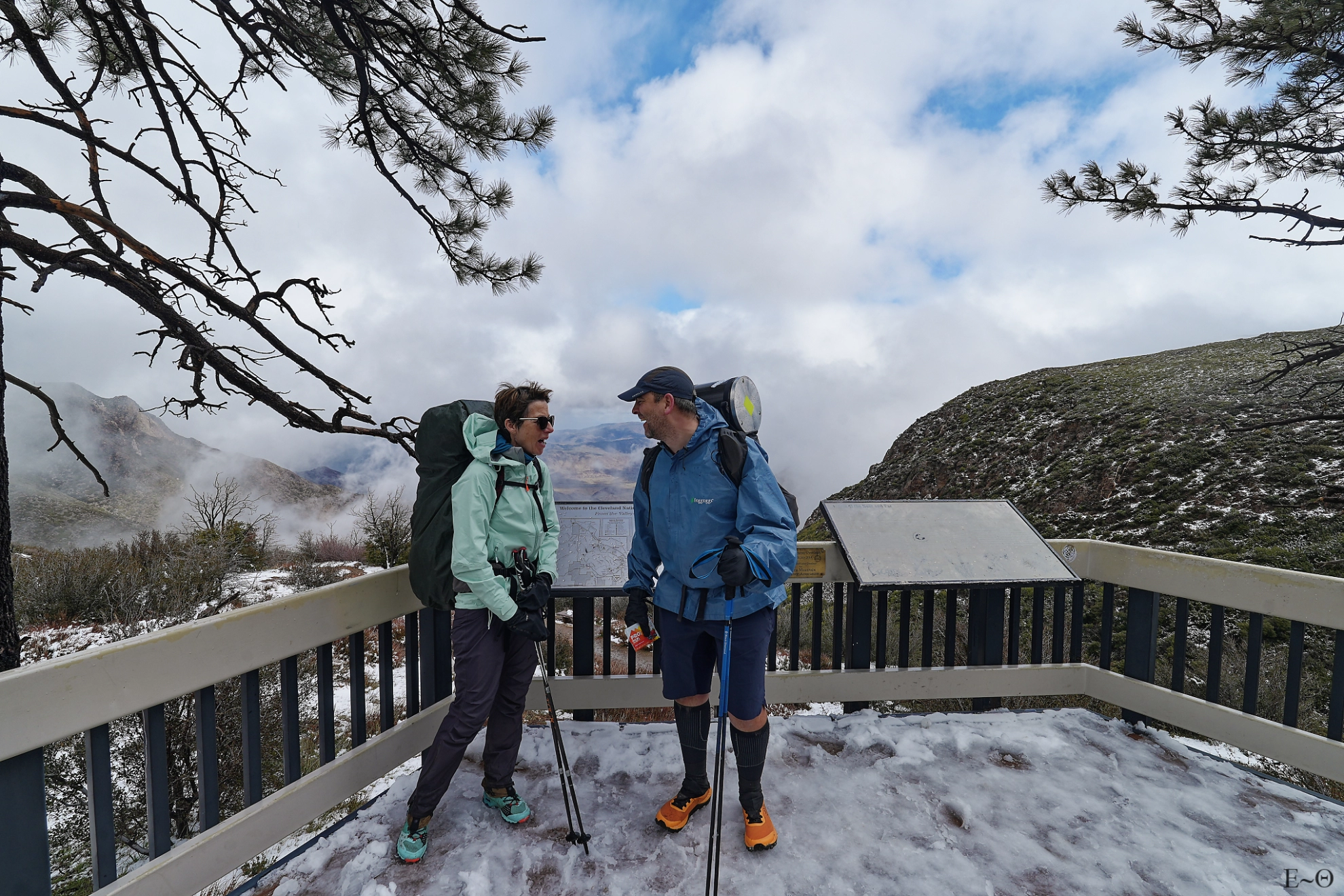 Il a peu neigé cette nuit, par contre il a fait froid et la neige de la veille n’a pas fondu. Nous nous dirigeons vers le Laguna Mountain Visitor Center où nous faisons notre ravitaillement pour les 4 prochains jours. Nous sommes encore à tâtonner sur les choix de nourriture. Cela ne devrait pas durer, du moins nous l’espérons.