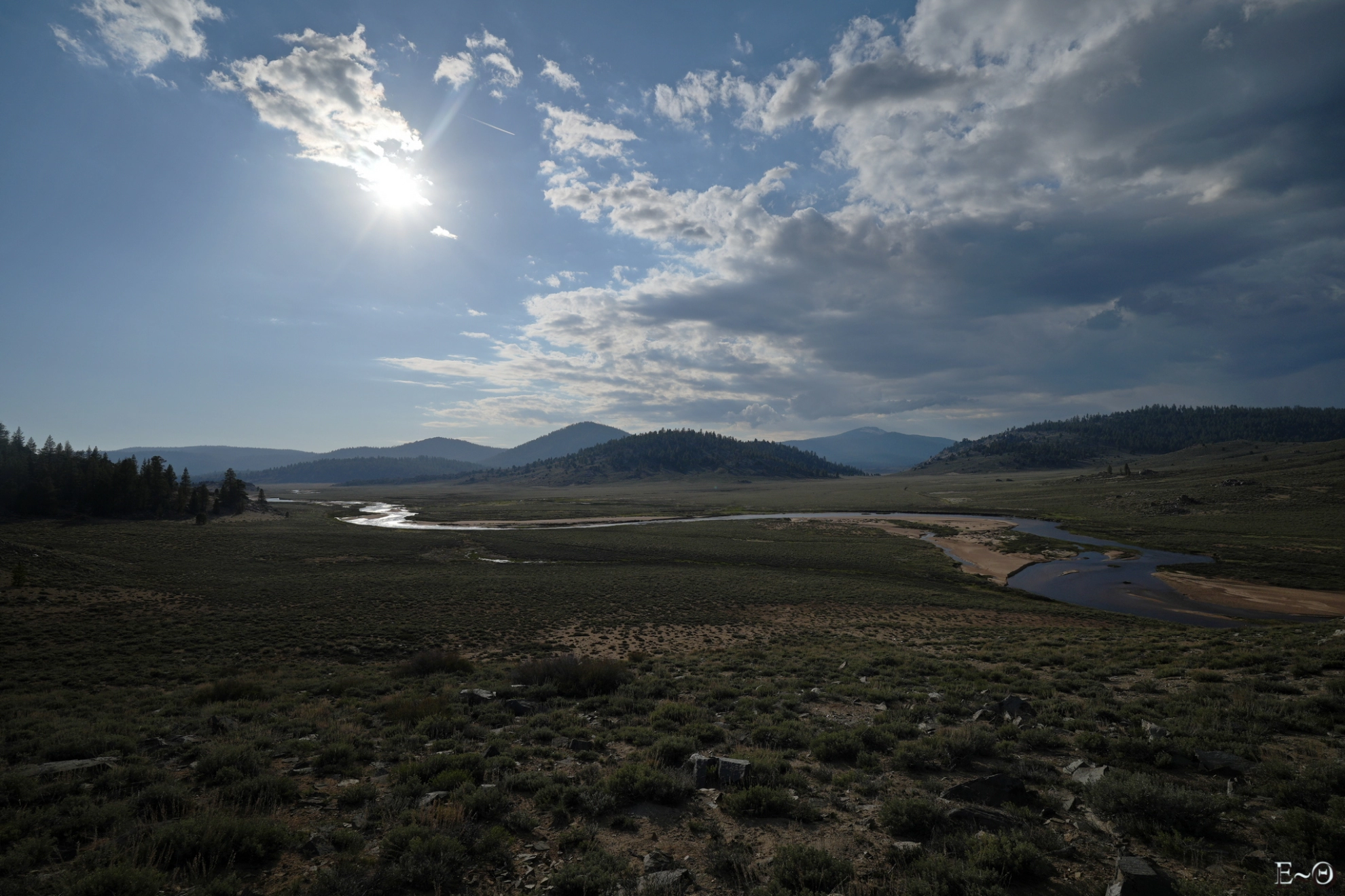 Le mont Grag Peak nous domine de ses 2800 mètres. Le franchissement du col sans nom entre celui-ci et le mont Deer Mountain est saisissant. Devant nous s’étale Monach Meadows, la plaine est immense, les arbres s’arrêtent à ras de la zone humide et la rivière South Fork Kern ré apparaît. Elle a contournée Deer Mountain par son flanc est et nous par son flanc ouest. Nous rejoindrons celle-ci et campons à côté du pont permettant de l’enjamber une ultime fois, au bout de 6 kilomètres faciles, dans une ambiance magique.