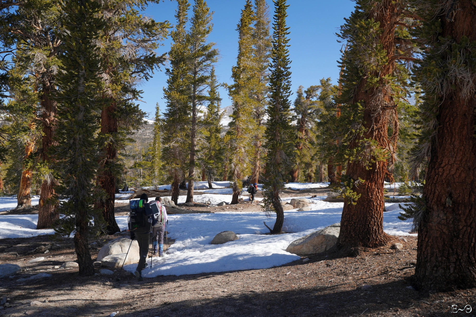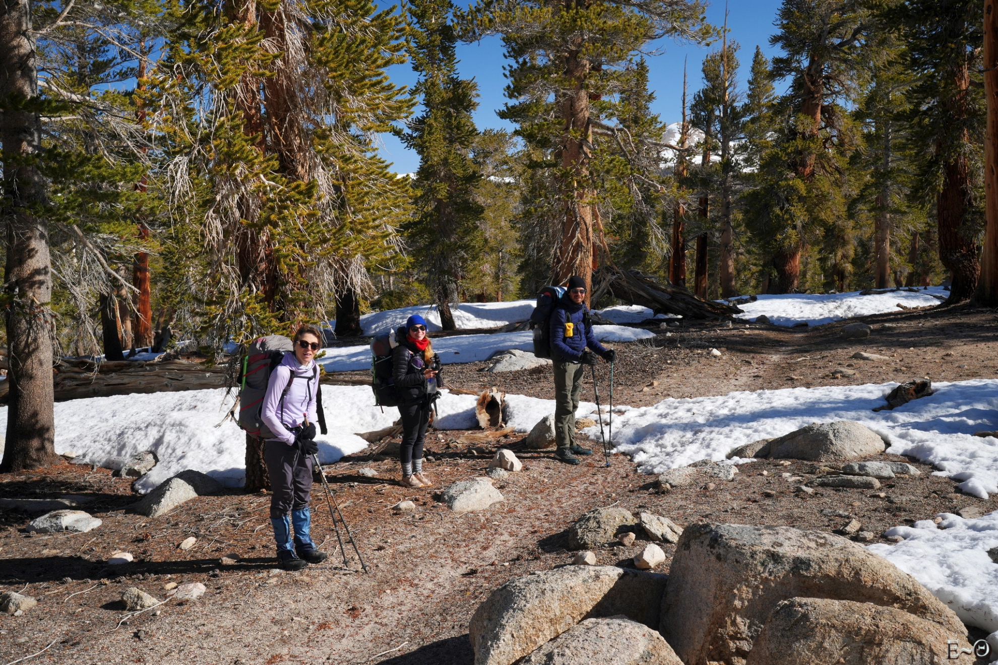 L’ambiance est excellente et nous sommes tous un peu impatients de ce qui nous allons découvrir demain. Nous sommes maintenant dans Sequoia National Park, au début de la vallée qui va nous conduire au col Forester. C’est un passage mythique du PCT, point culminant de l’ensemble des 4200 km, mais aussi le premier ou dernier verrou dans la Sierra selon le sens de progression du hiker.