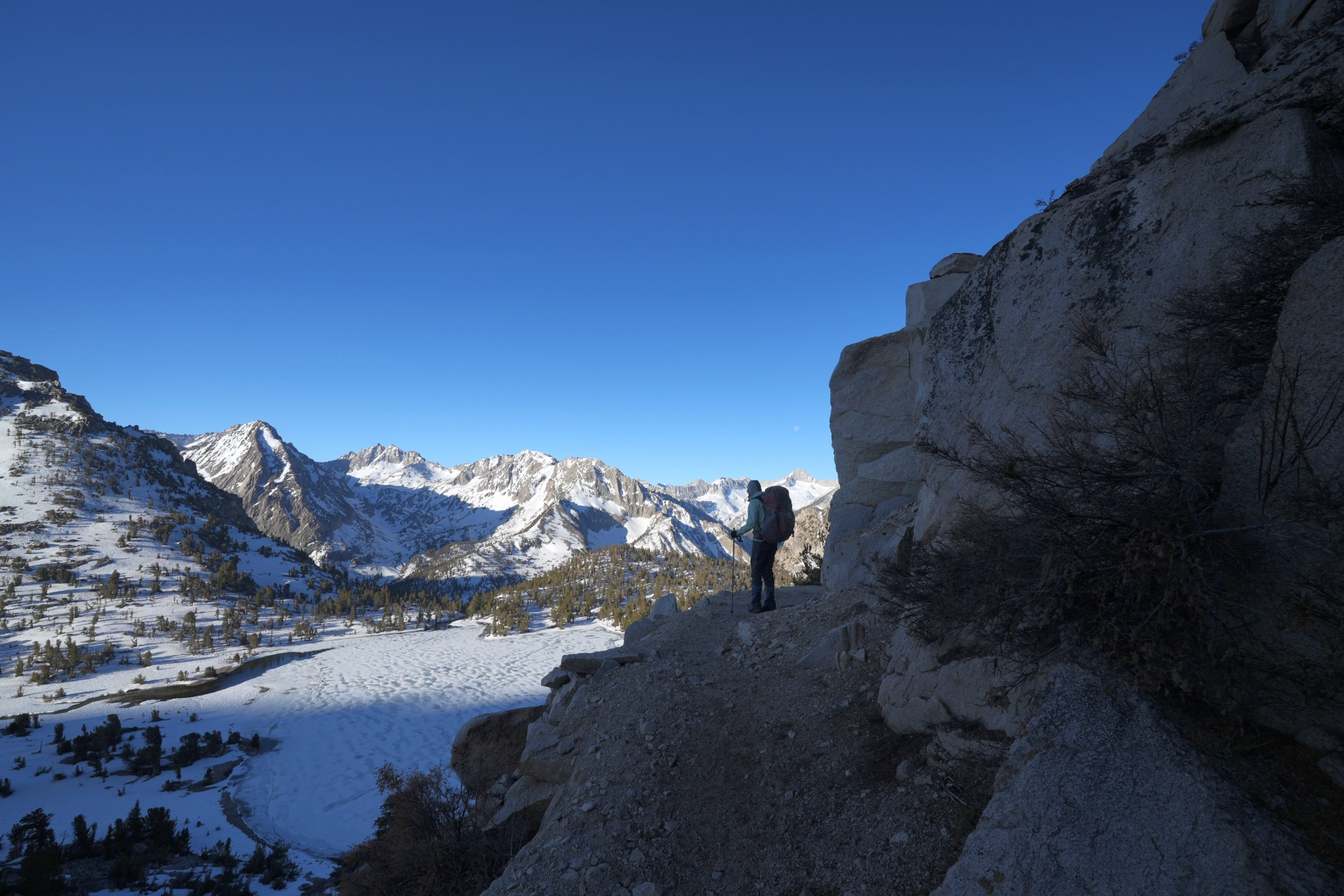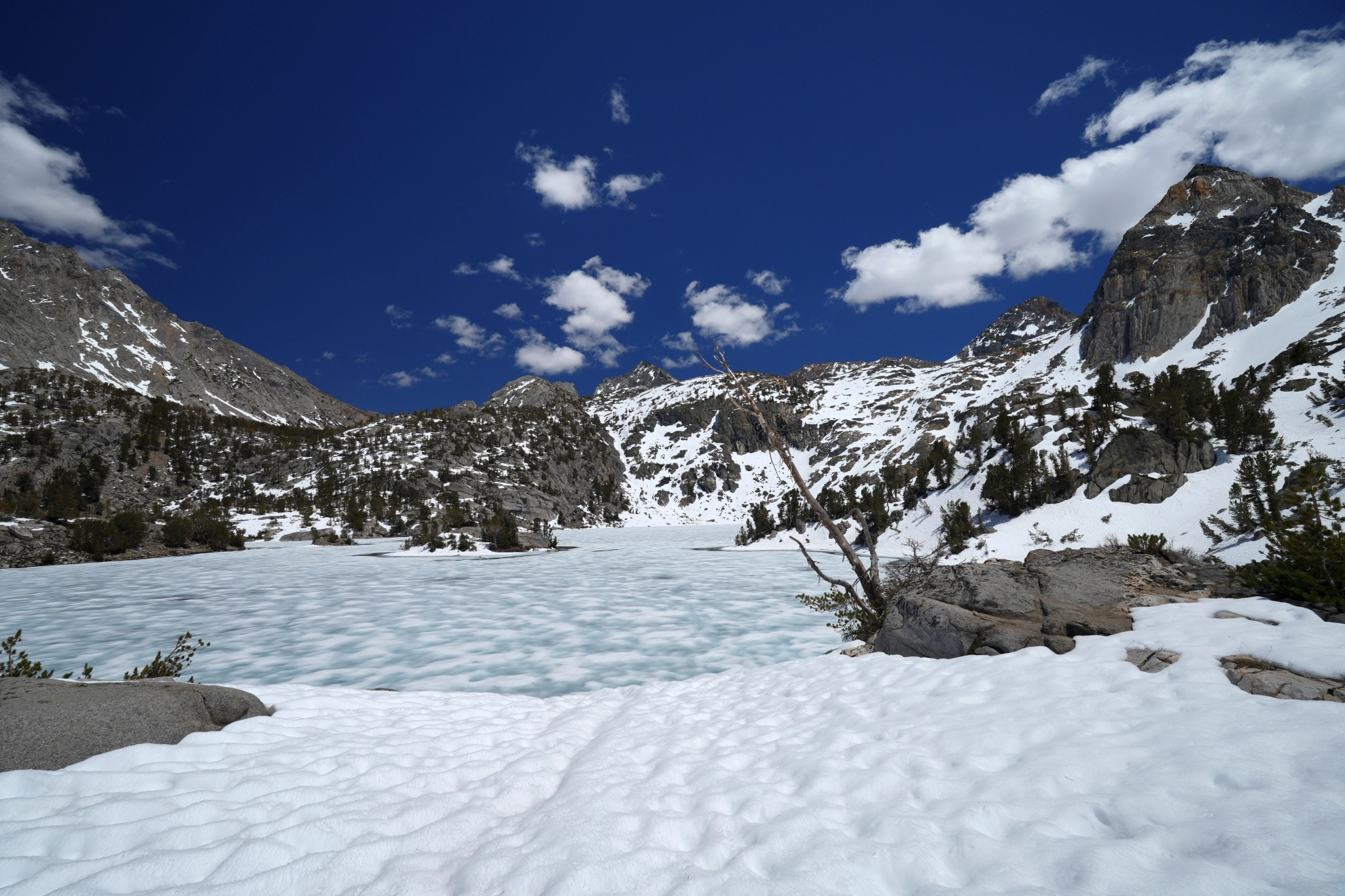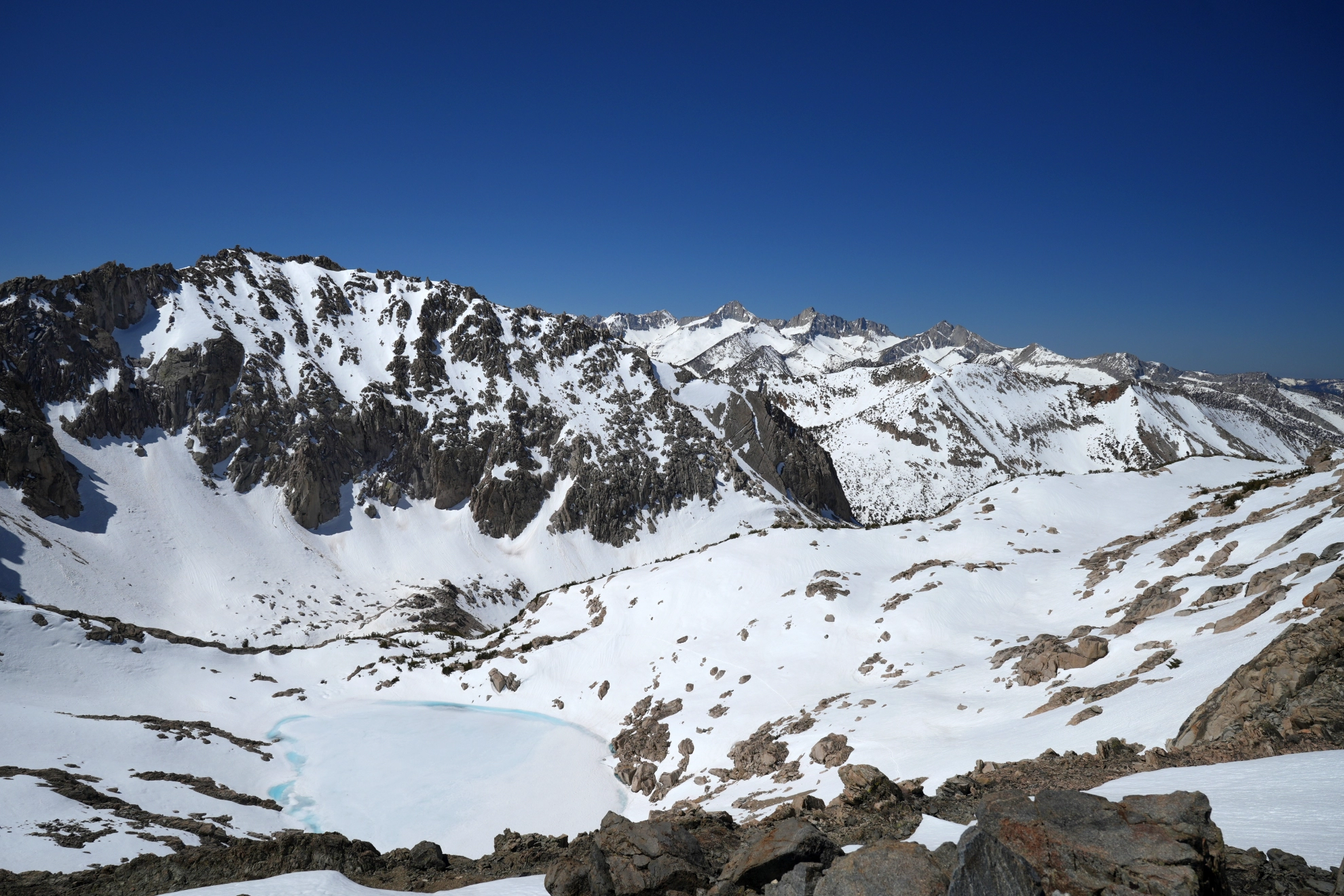 C’est un verrou à franchir qu’il ne faut pas prendre à la légère. Idéalement nous devons être au terme de l’ascension avant 10 h pour que la neige à la descente ne soit pas trop molle. Il permet de passer d’un des affluents de Bubbs Creek à l’immense vallée glaciaire qui fend du sud vers le nord la Sierra jusqu’au col de Mather Pass.