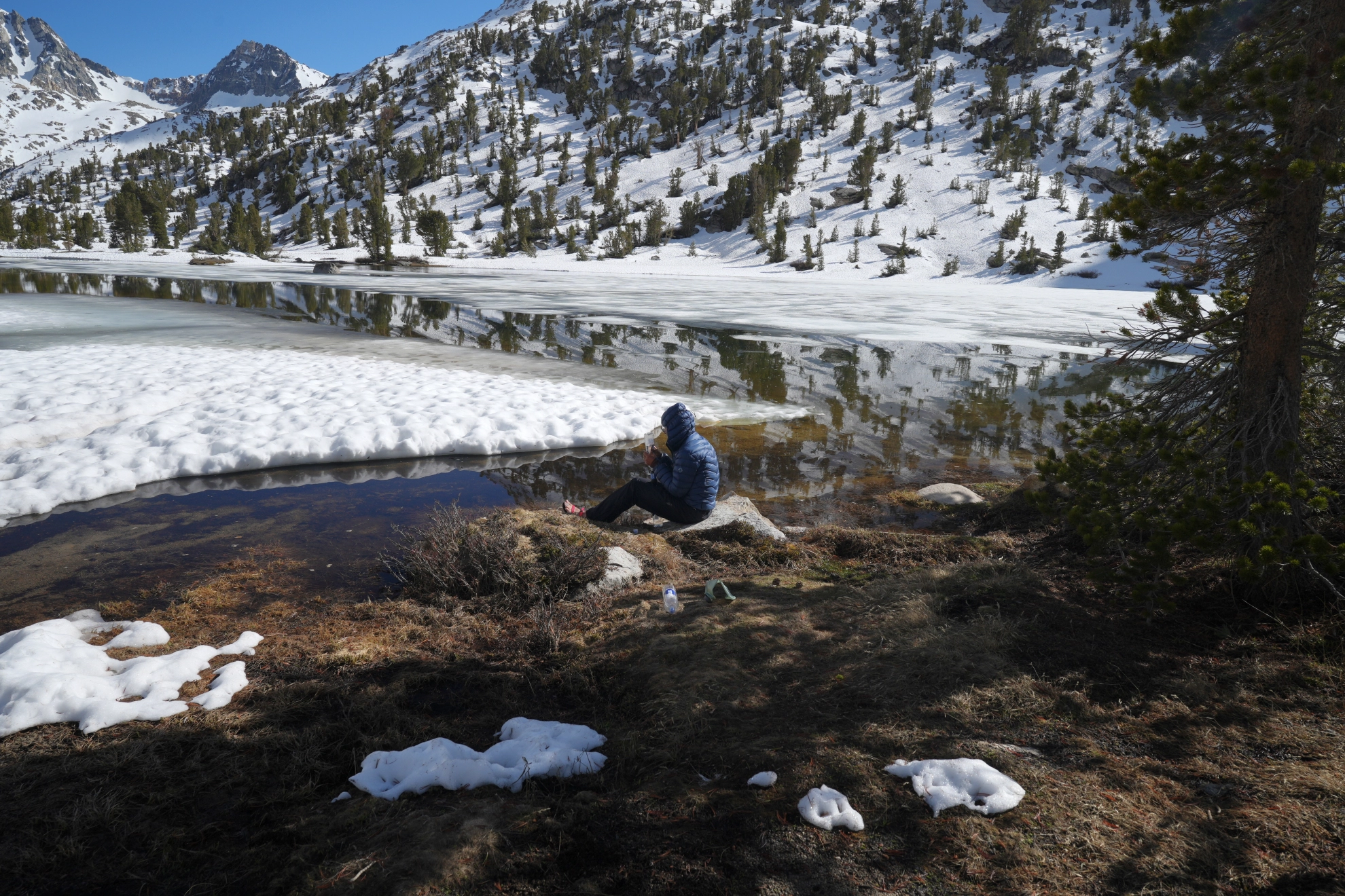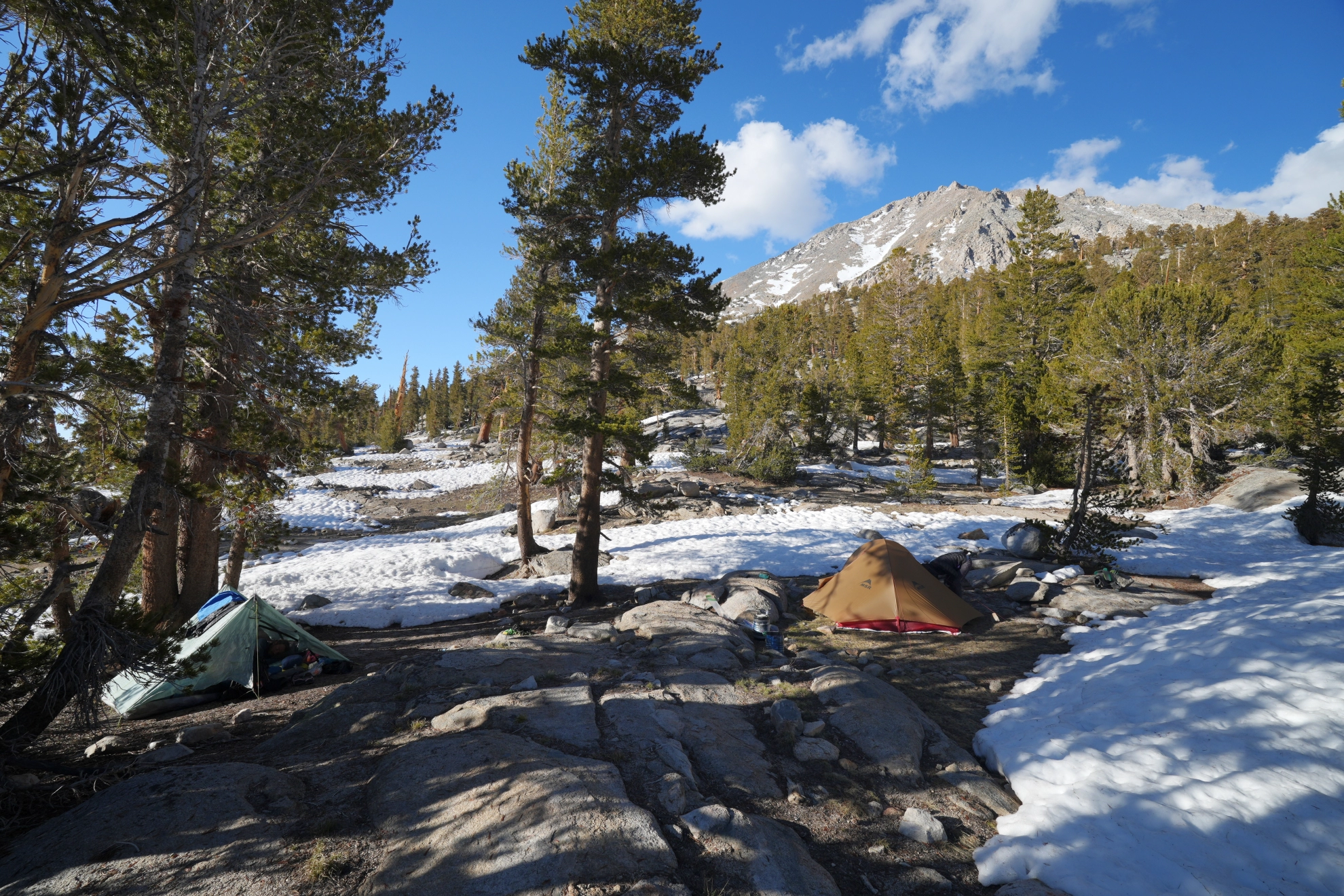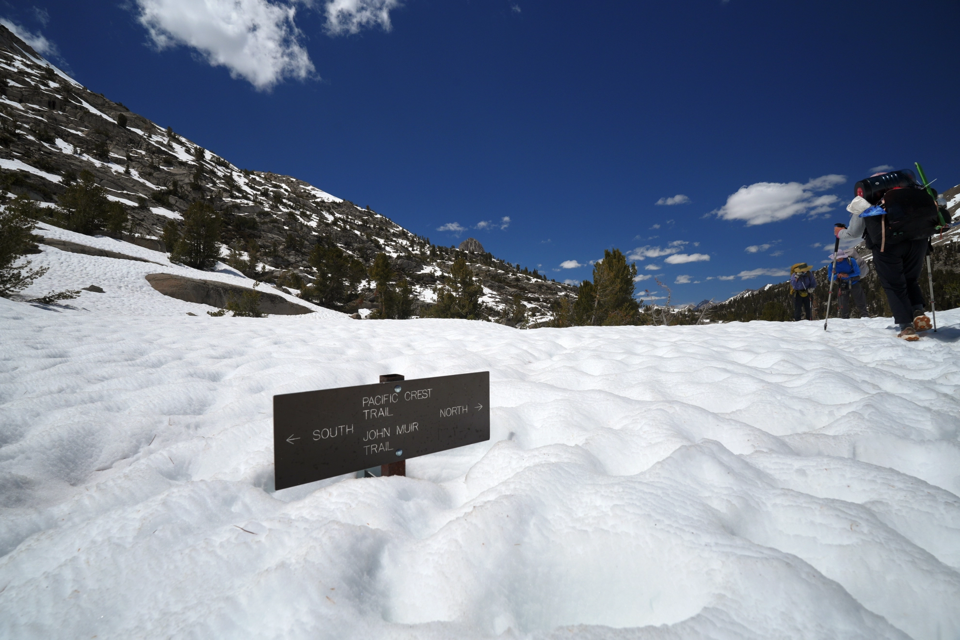 Après plus de neuf kilomètres, nous n’avons toujours pas retrouvé Janet. C’est étonnant. Nous sommes maintenant dans les pentes de Glenn Pass et il n’y a plus d’emplacement hors neige.