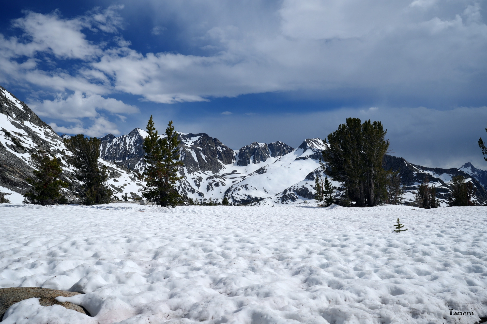 Nous arrivons avec Anthony et Tamara au niveau de Twins Lake, nous ne trouvons pas IceBreaker. L’ensemble des spots sont couverts de névés, par contre il y a des zones hors neige, une centaine de mètres en contrebas. Nous décidons de nous y installer. Nous savourons cette fin de journée bien longue encore.