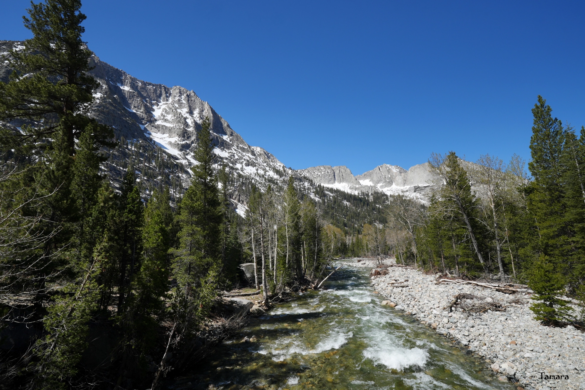 La journée s’annonce théoriquement calme. Nous savons que nous allons longer en descente la rivière South Fork Woods Creek pour rejoindre au niveau d’un pont le torrent Woods creek que nous suivrons en montée jusqu’au lac Twin Lakes.