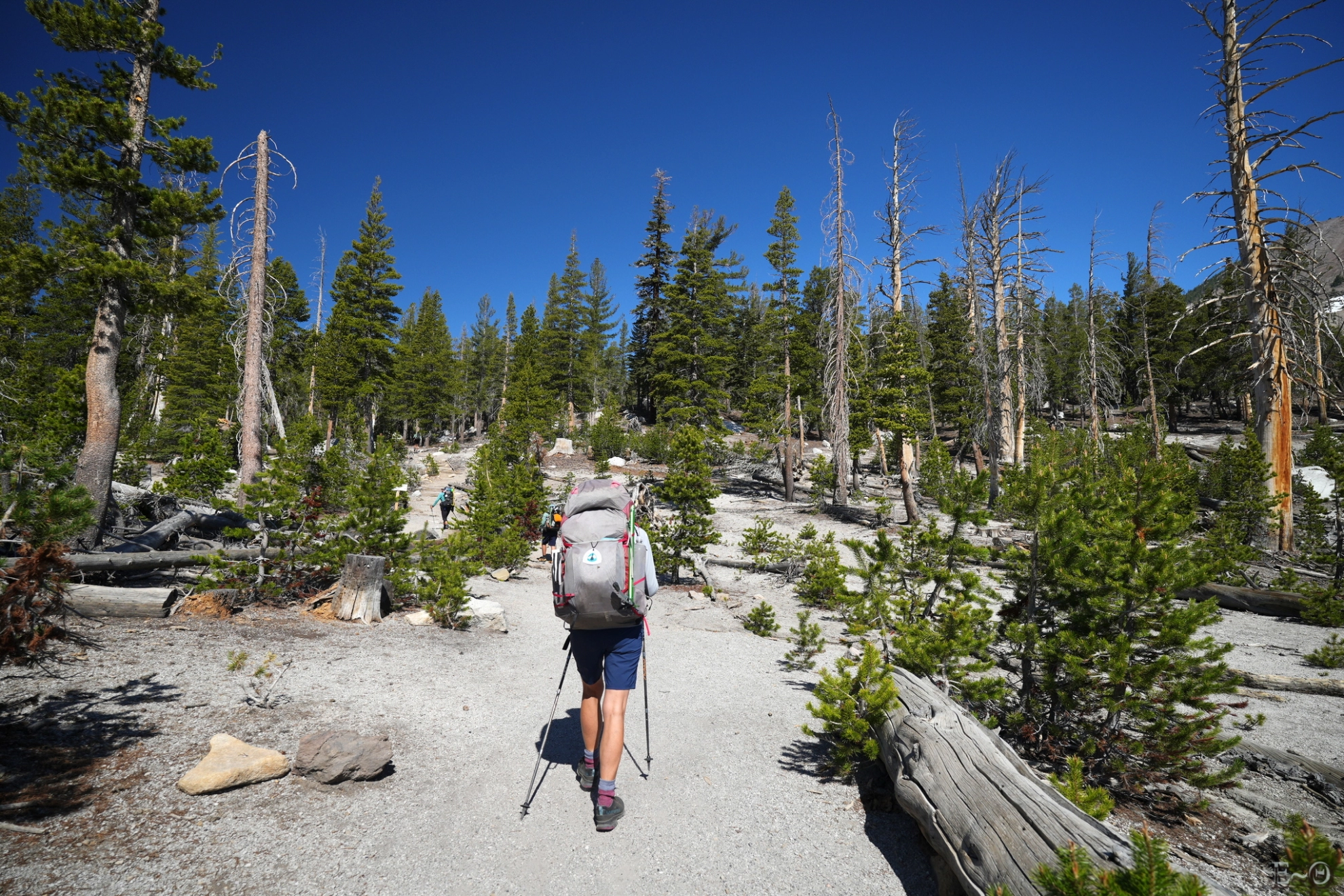 Au niveau de la prairie de Soda Springs, nous suivons la route sur trois kilomètres puis bifurquons vers Upper Soda Springs. Cette portion du PCT reste parallèle au John Muir Trail qui est plus à l’Ouest. Nous ne le retrouvons que demain en fin de matinée. Nous rejoignons le PCT au bout de 20 km. Les 7 derniers kilomètres sont terribles.