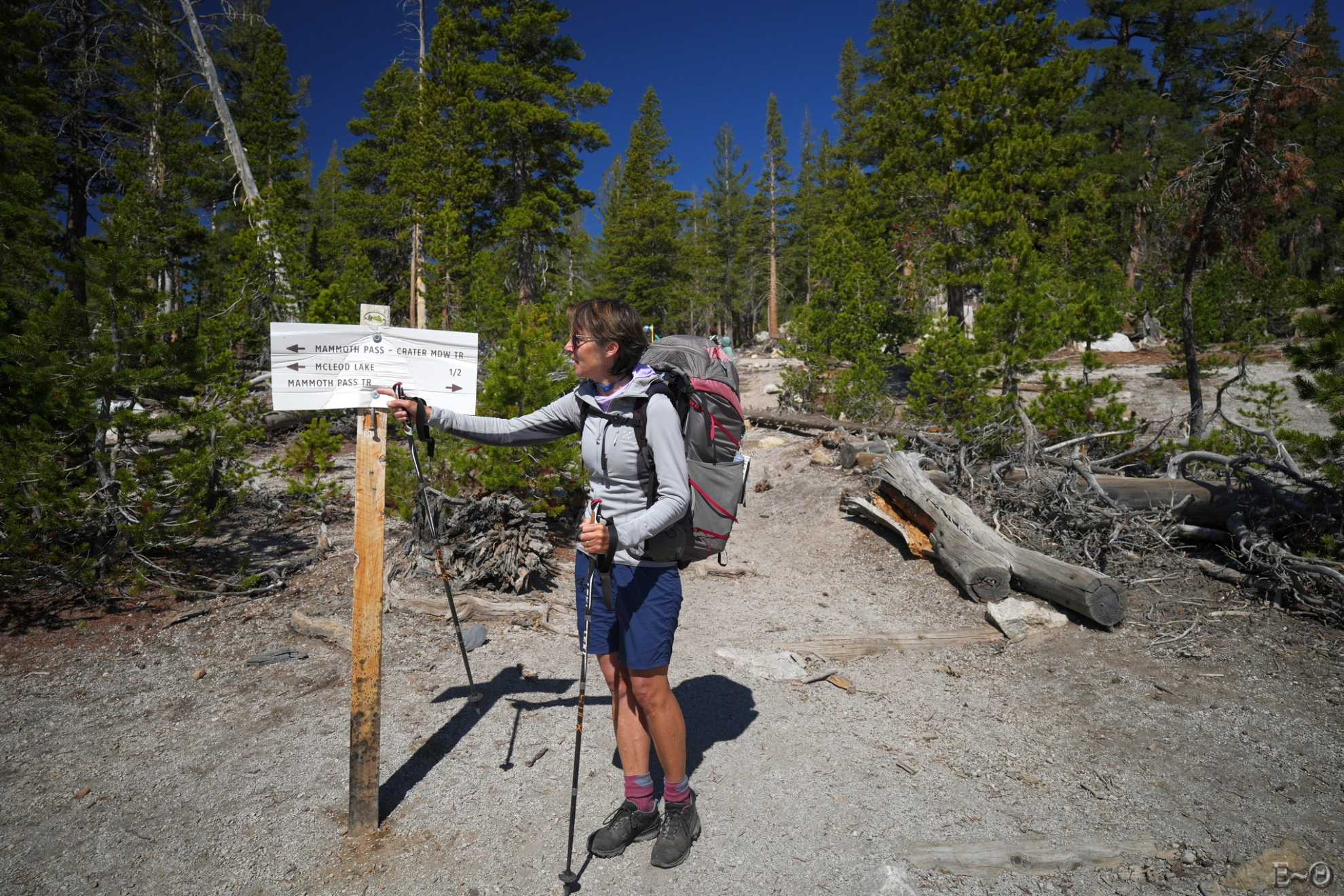Nous revenons sur le PCT après une heure trente et 6 km. Nous suivons la rivière Crater Creek en forêt et filons vers Red meadows. C’est une halte classique des PCTistes, qui peuvent quand la route n’est pas fermée se faire envoyer un colis. Cela permet d’éviter le passage onéreux par Mammoth Lake.