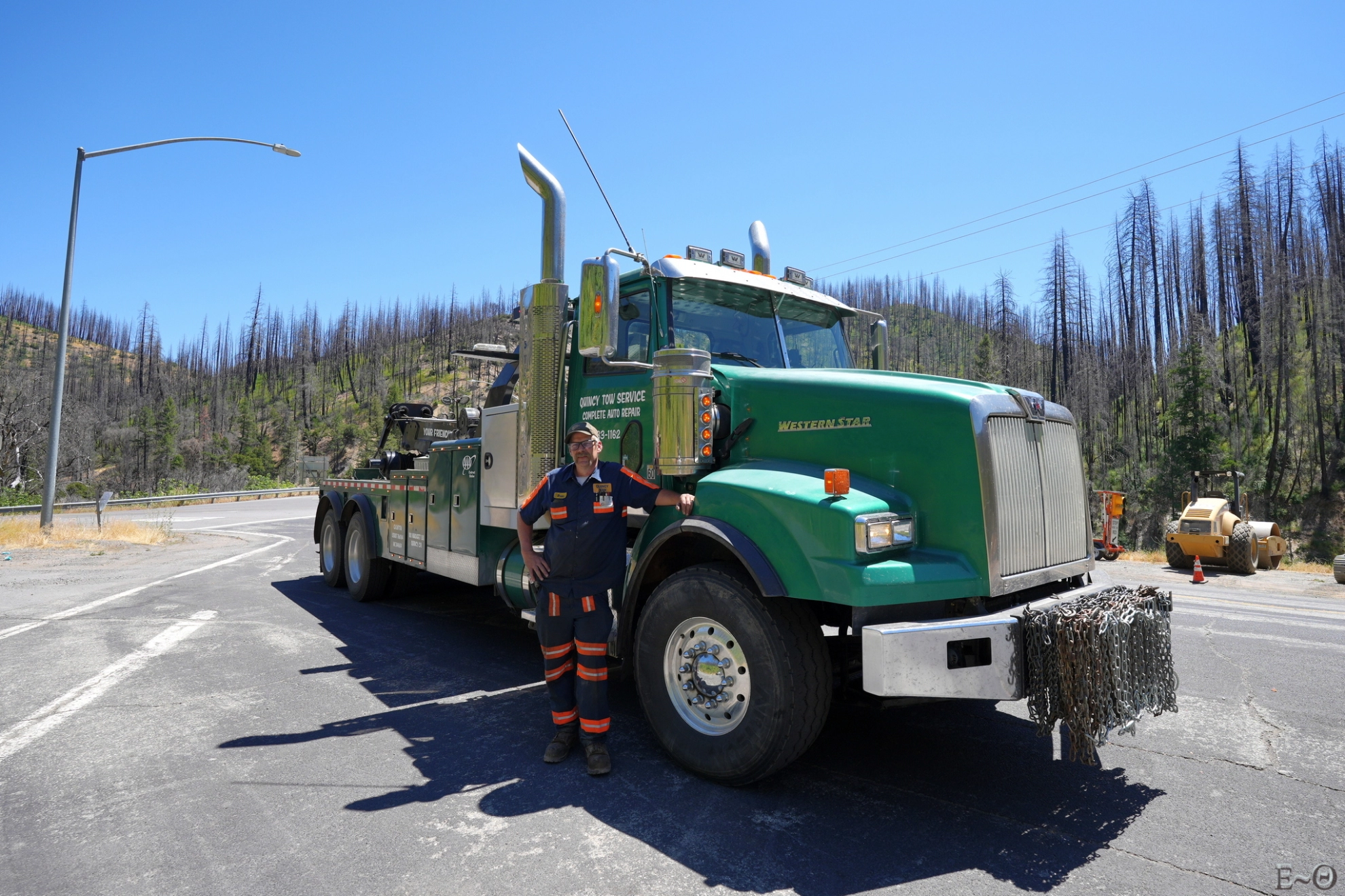 Celui-ci nous pose à Twain WB Weigh Station. Le lieu est intégralement brûlé et nous sommes en plein soleil. On croise les doigts pour ne pas être coincé ici.