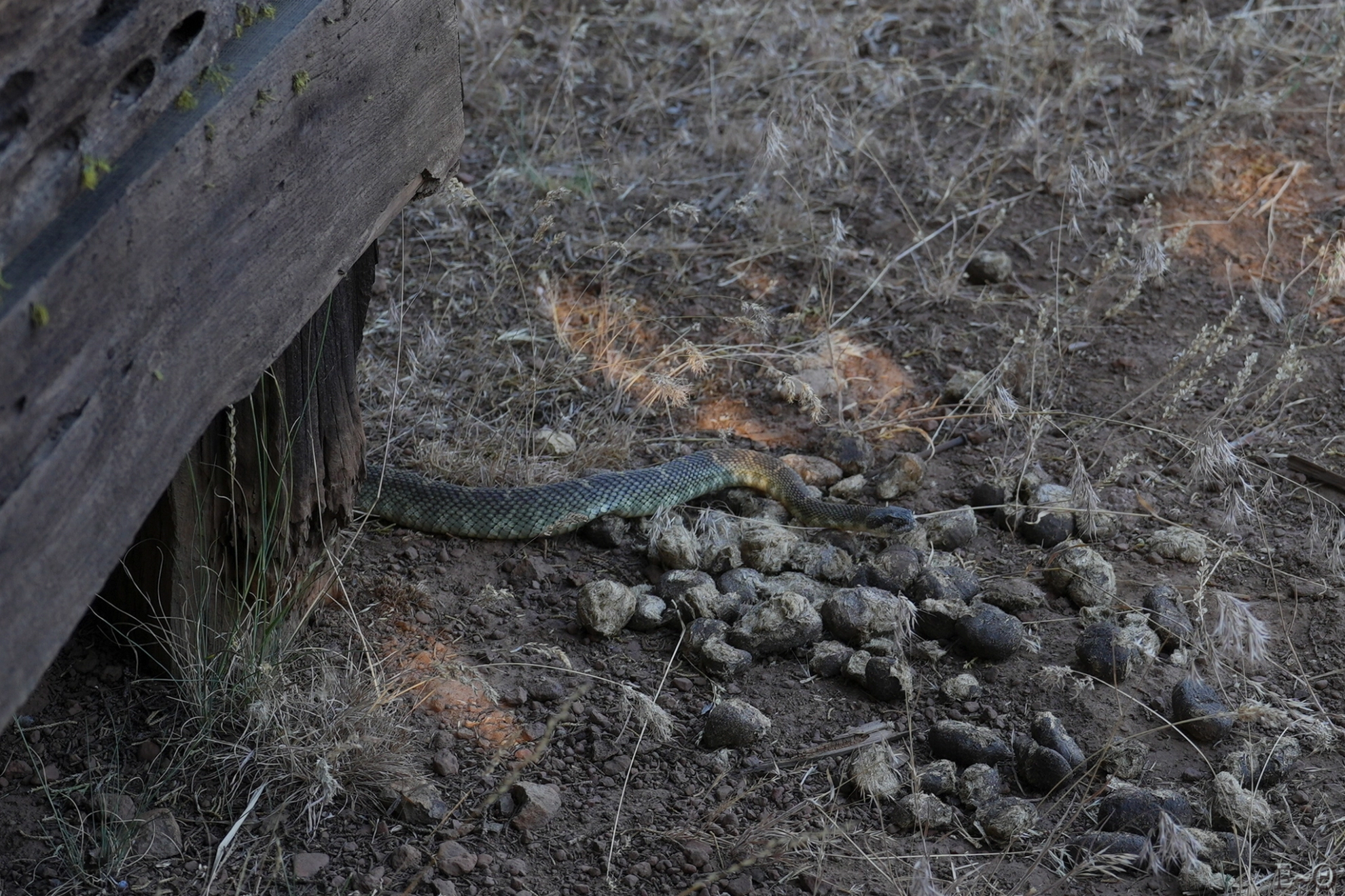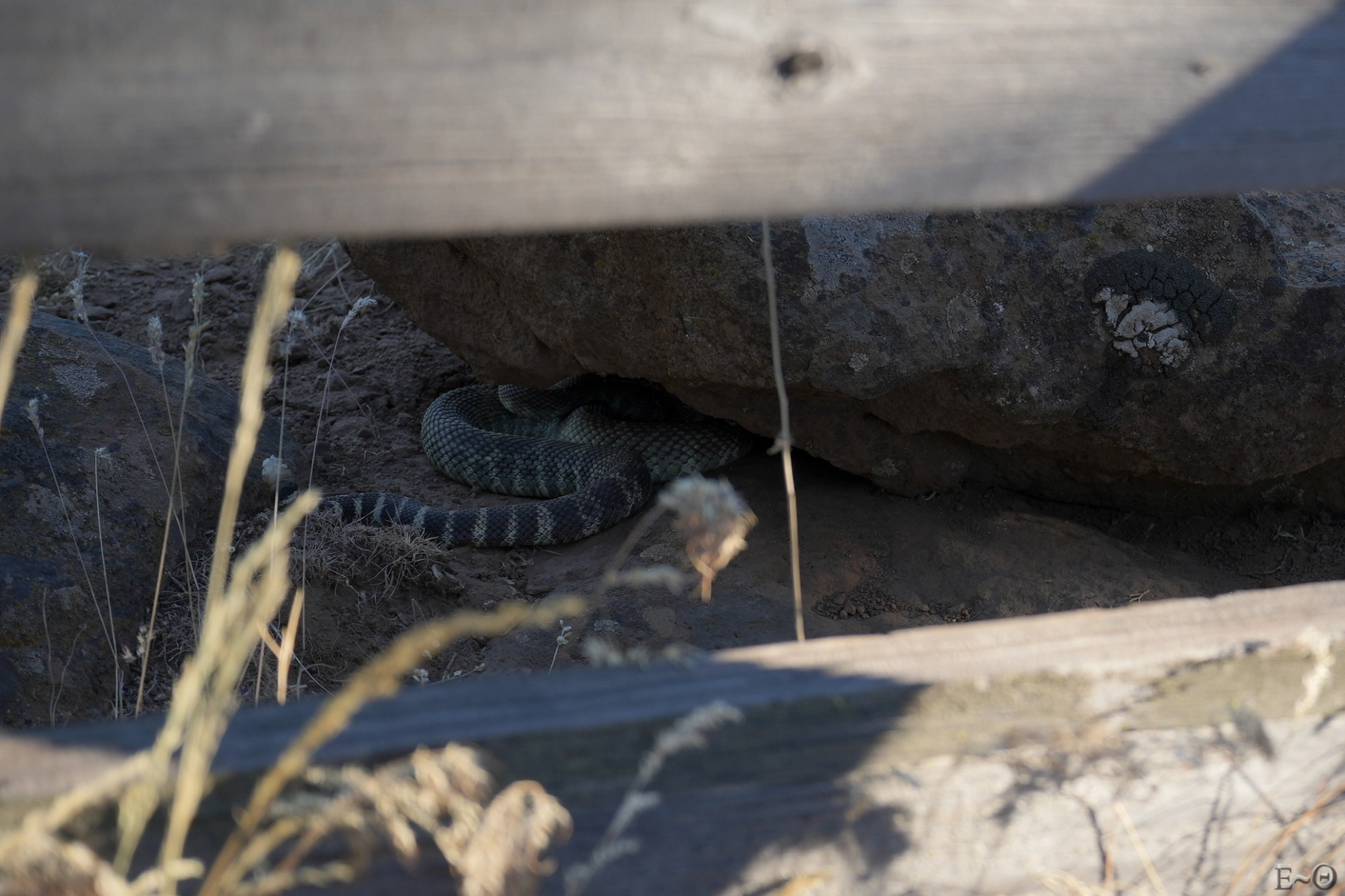Nous découvrons après avoir rempli pendant bien une demi-heure nos gourdes la présence d’un Rattle Snake à moins d’un mètre dans la citerne ! Visiblement, celui-ci s’est habitué aux randonneurs et ne fait plus signe d’agressivité. Étonnant.