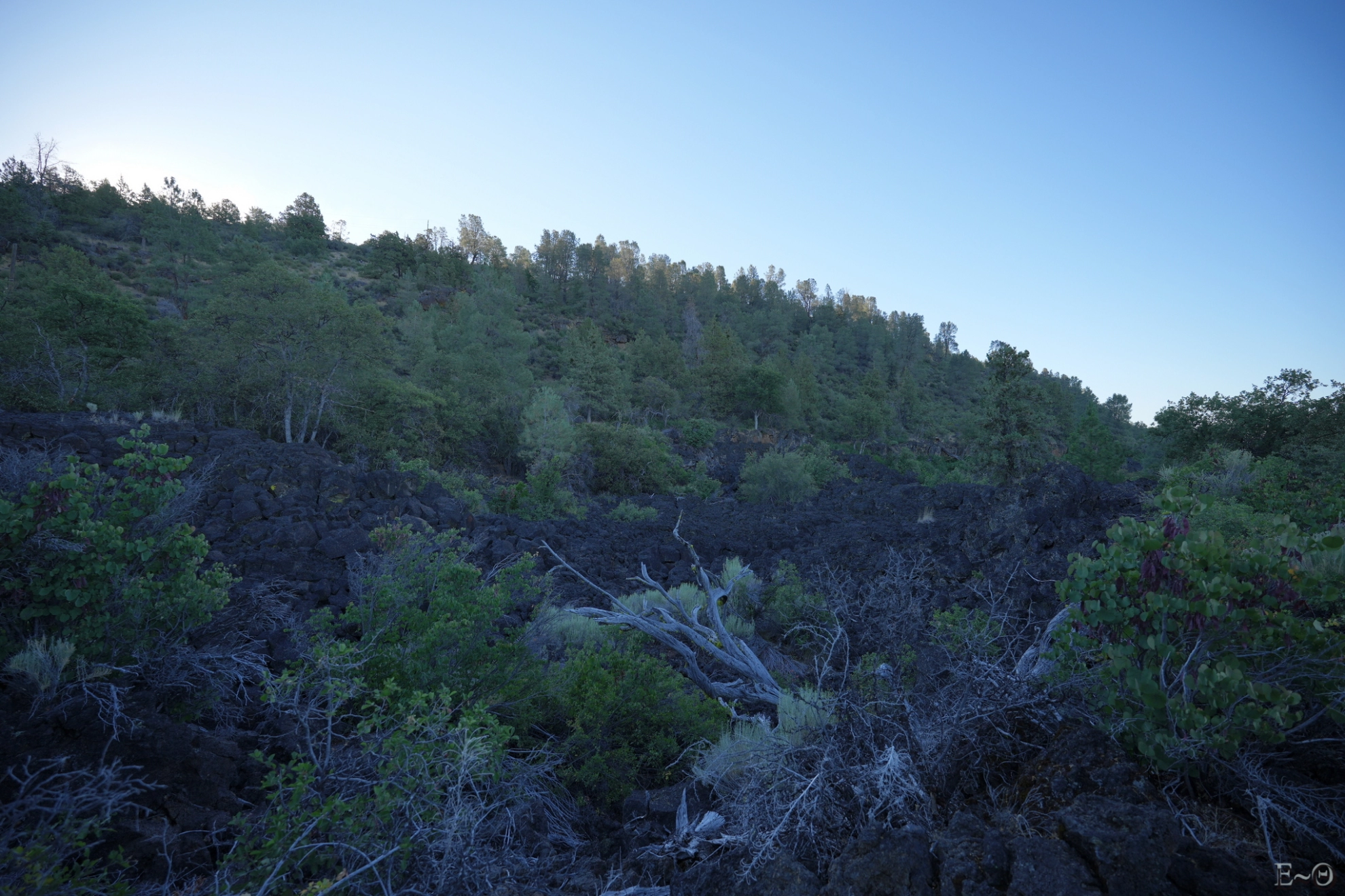 Nous marchons sur un sol rocheux, coulée de lave noir cordée, terrible pour les chaussures. C’est abrasif et coupant. Les nombreuses crevasses créaient au moment du refroidissement ont rendu le chemin cassant. Heureusement, le passage des randonneurs a fini par boucher les pièges. Des arbres réussissent à pousser dans les moindres étroitures ajoutant quelques touches de verdures. Malgré une datation ancienne d’environ 1000 ans, nous avons l’impression que l’éruption était hier. C’est étonnant. En arrivant dans la plaine, nous changeons de chemin, le sol est couvert d’une fine couche de poussière. On va être bien sale ce soir.